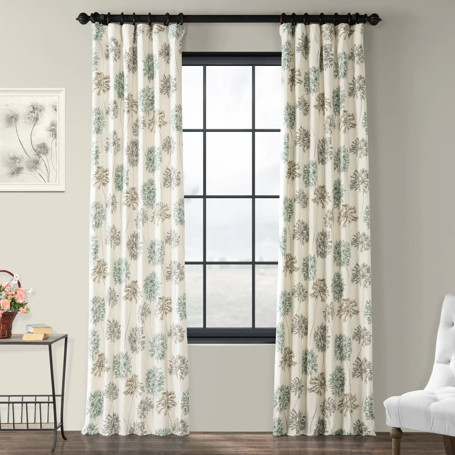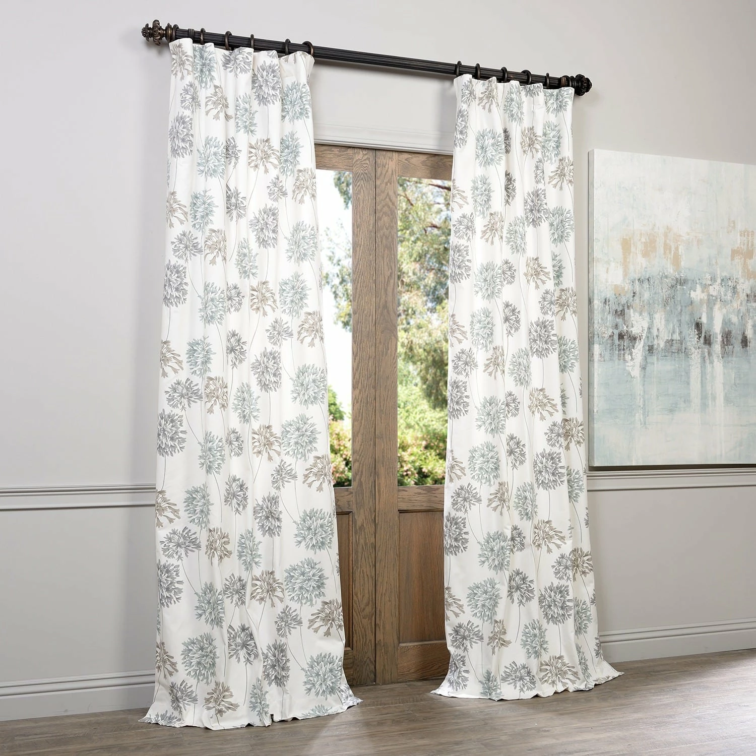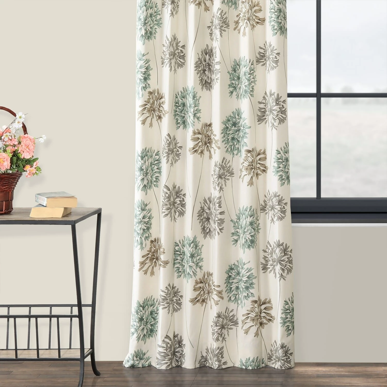 Add a touch of simple style to your home with the Allium Blue and Grey Printed Cotton Curtain Panel. This panel features a 100-percent cotton construction with a floral pattern and a cotton lining.