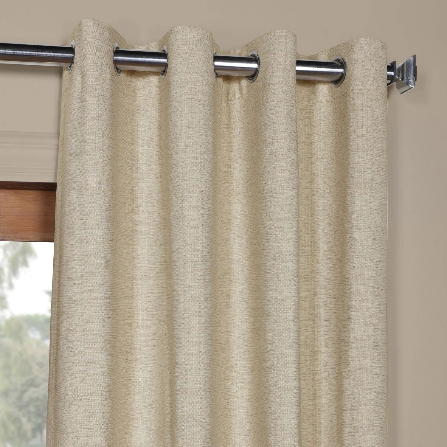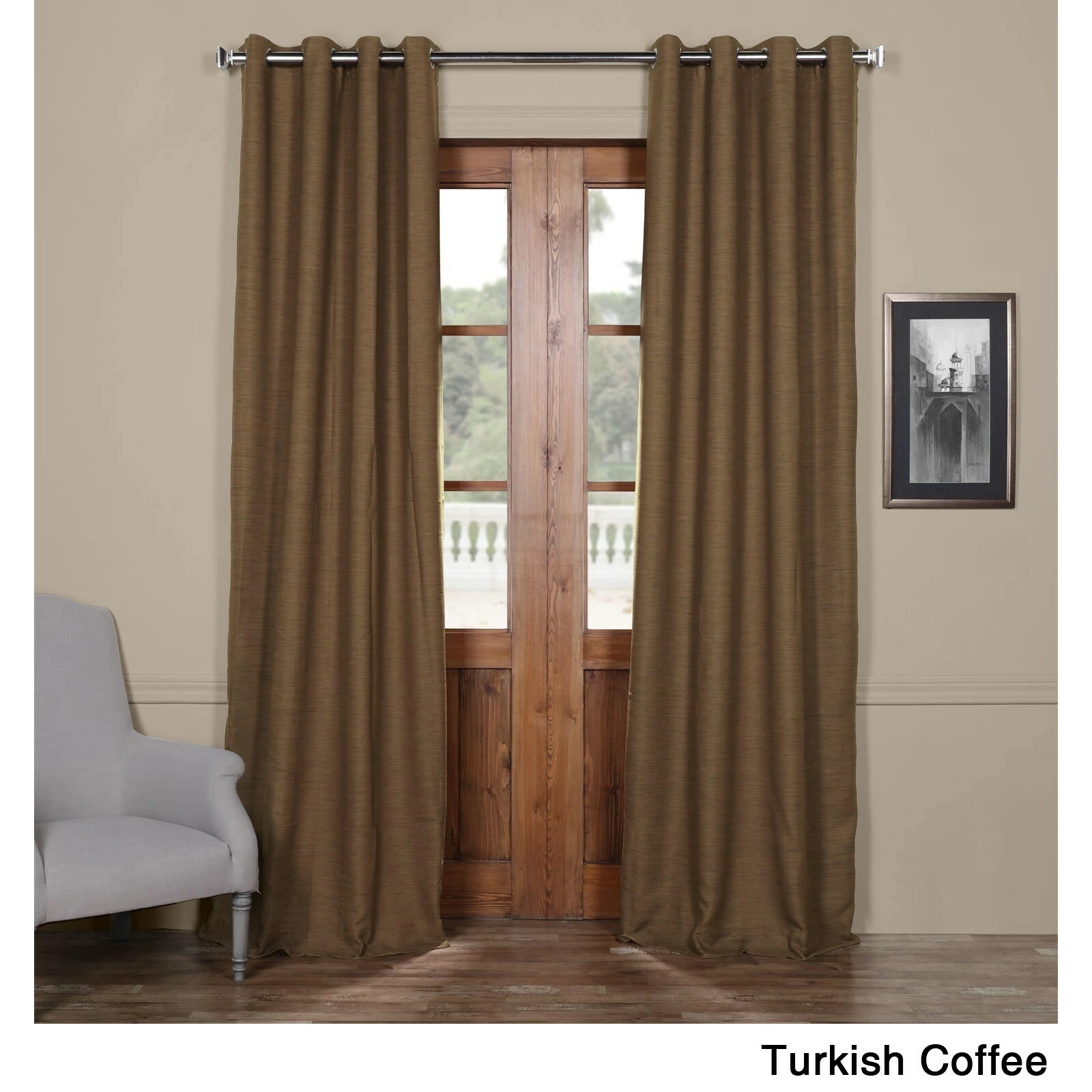 This durable curtain panel is woven from one hundred percent polyester and is available in numerous attractive color options. The curtains black out light to help save energy and control the lighting of a room to help you get more restful sleep or have a perfectly dark room for a movie. Easily installed using the grommet hanging construction.