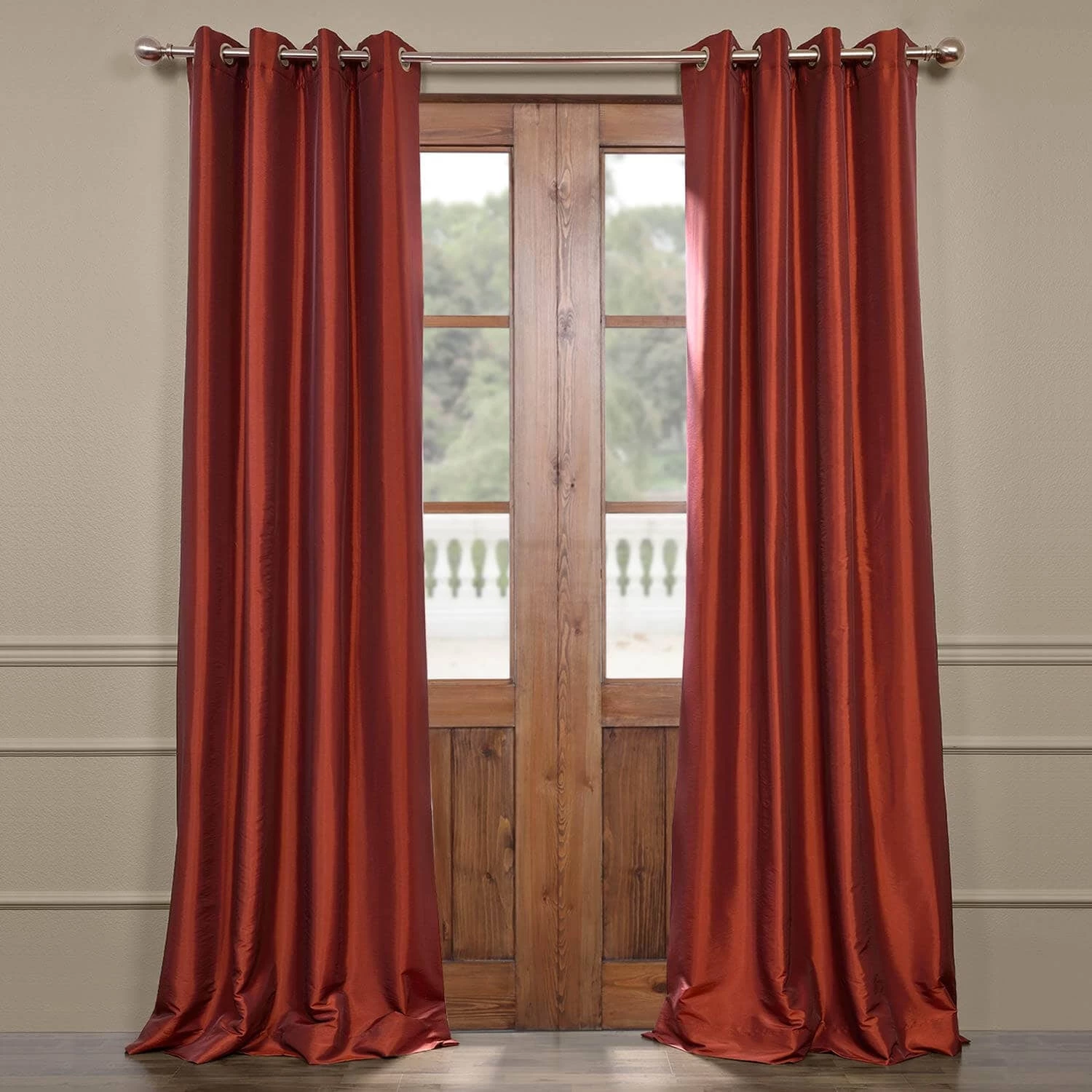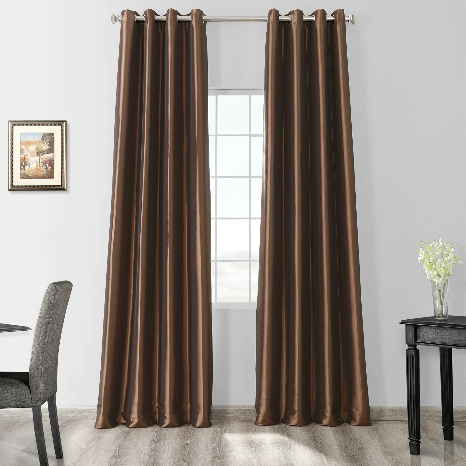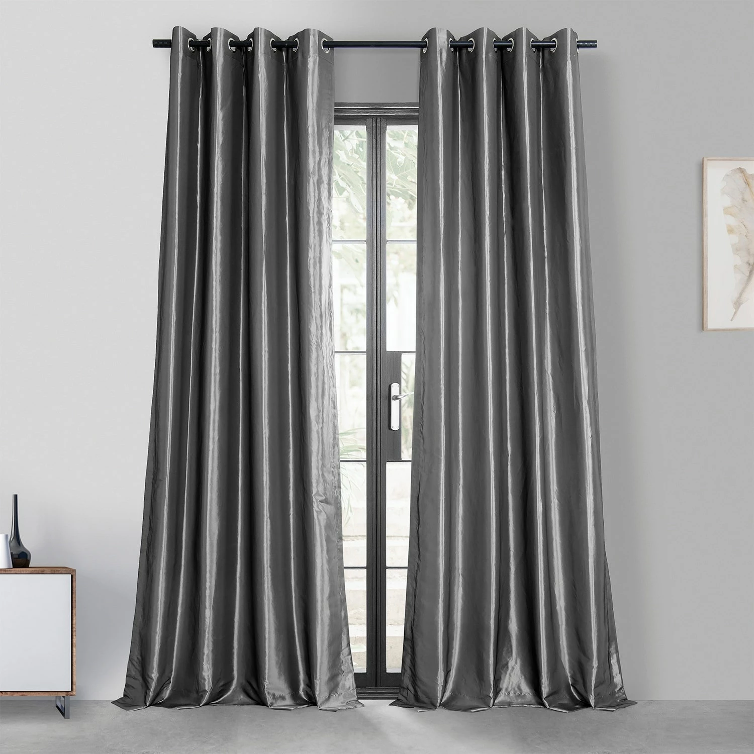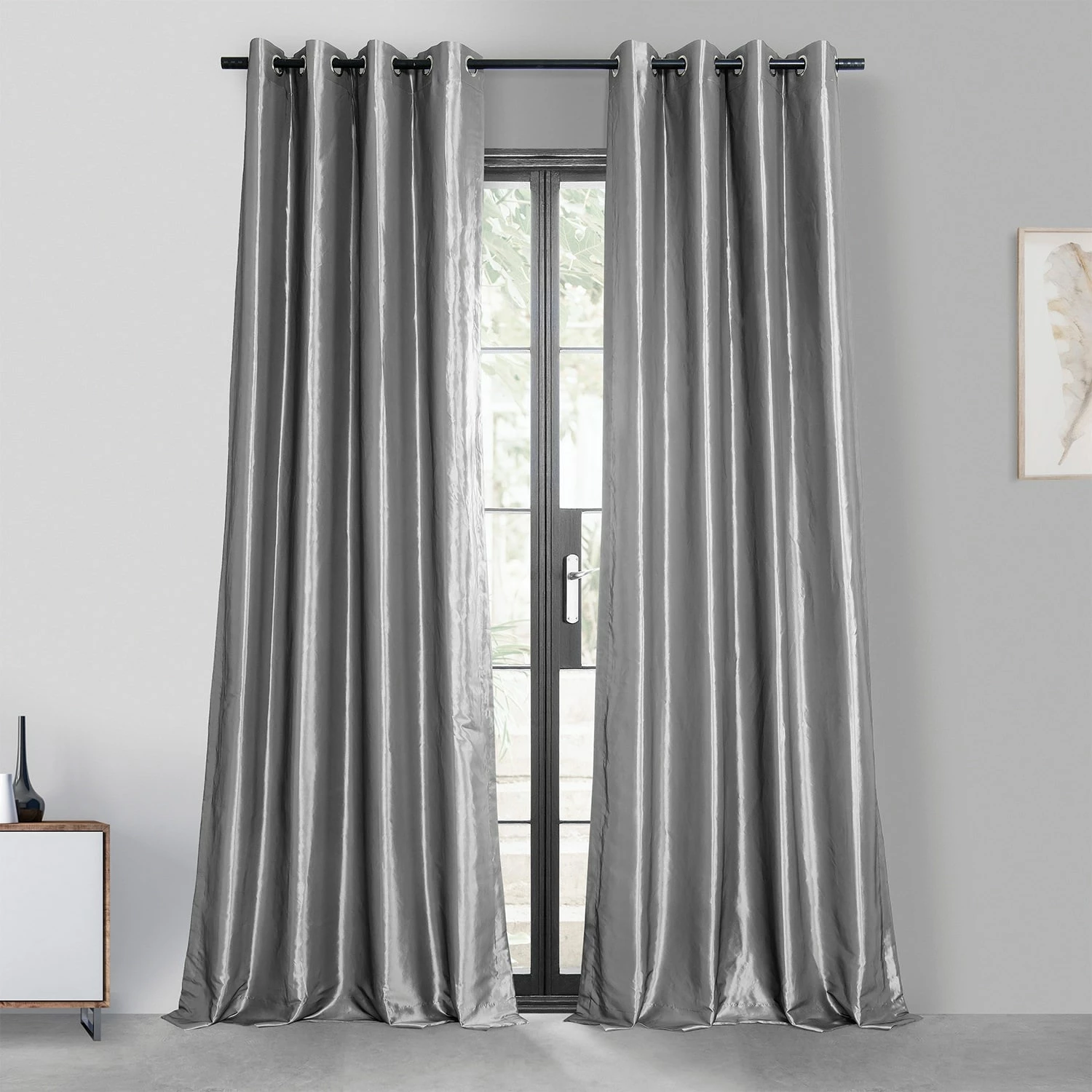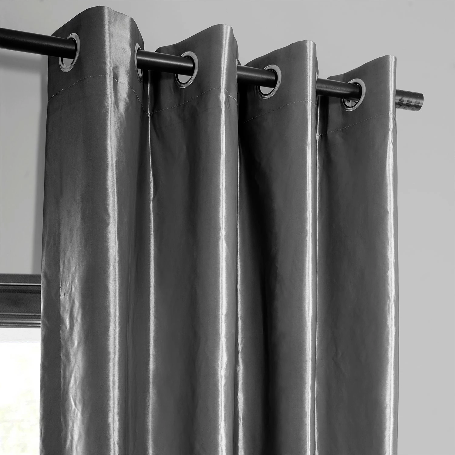 Sleek, elegant fabric drapes in graceful style in this luxuriously long curtain panel. The faux silk taffeta is wonderfully suited to blackout purposes for privacy, tranquility, and dampened noises. Natural crinkles in the fabric add character for a rich, authentic look in your choice of hues for perfect pairing with home decor.