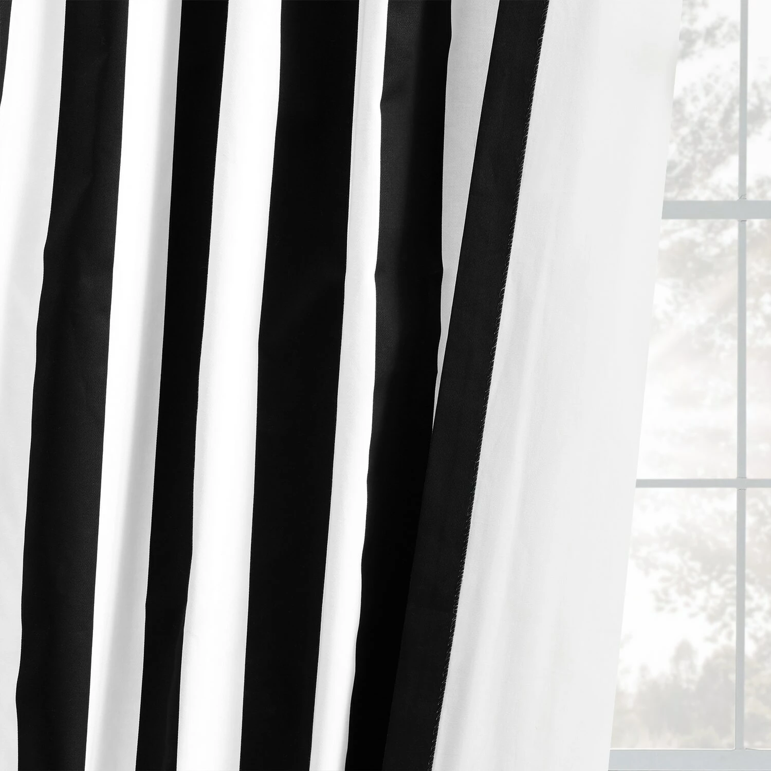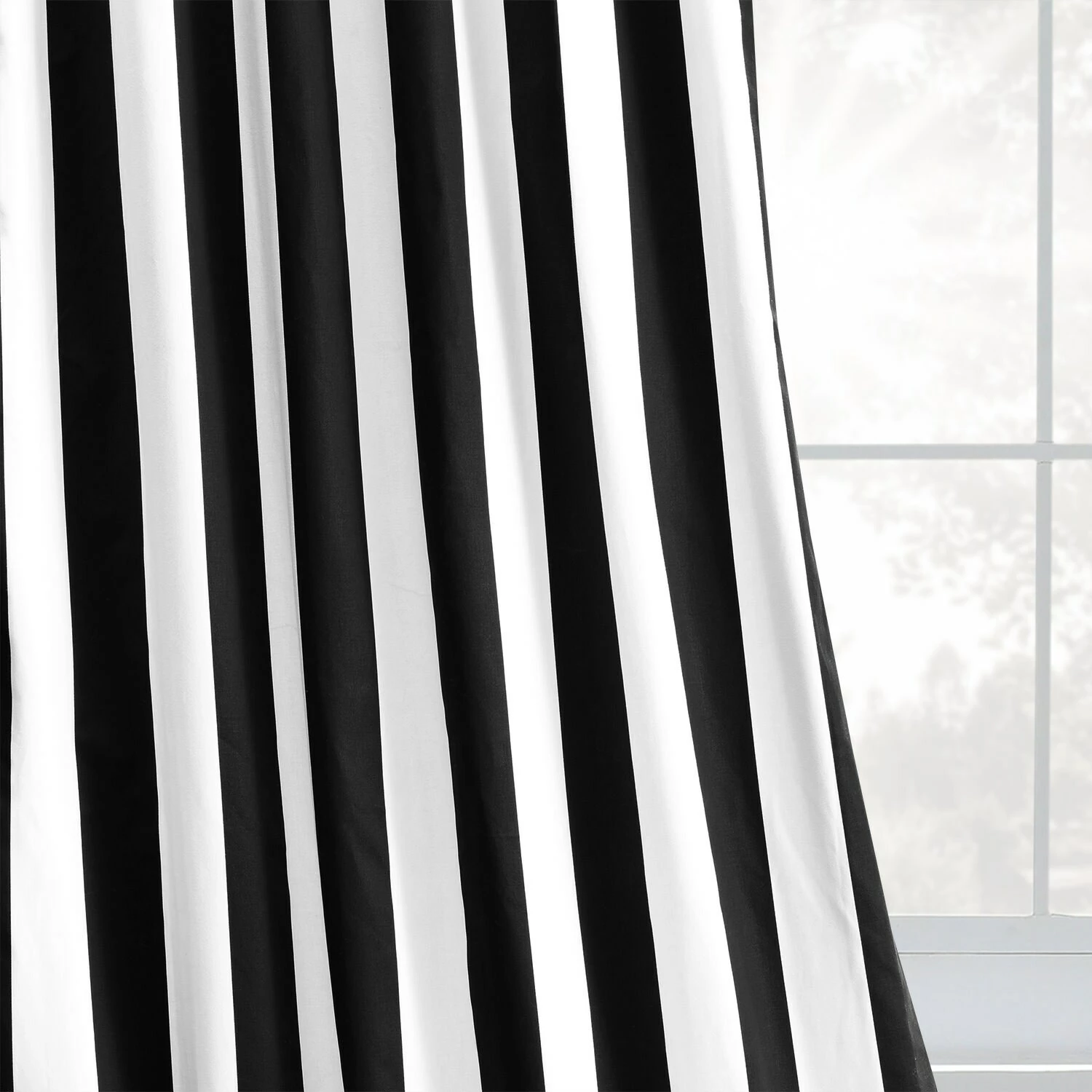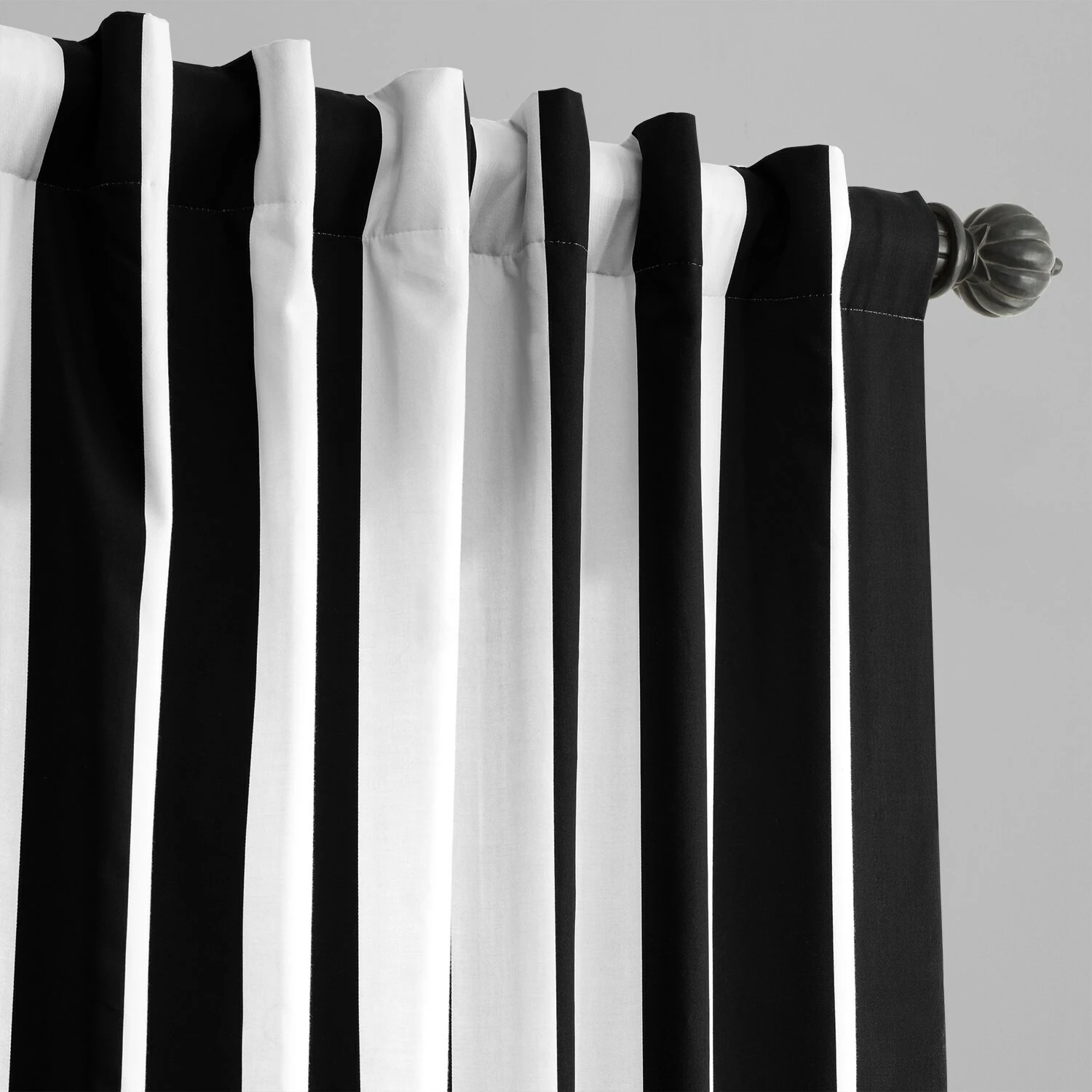 Evoke a spacious and airy feel in your family room by hanging this curtain panel over a window or French door. Featuring black and white vertical stripes, perfect for creating the illusion of more height, this curtain panel is made using 100-percent cotton with a shade-enhancing lining for a plush texture and optimal light filtering.