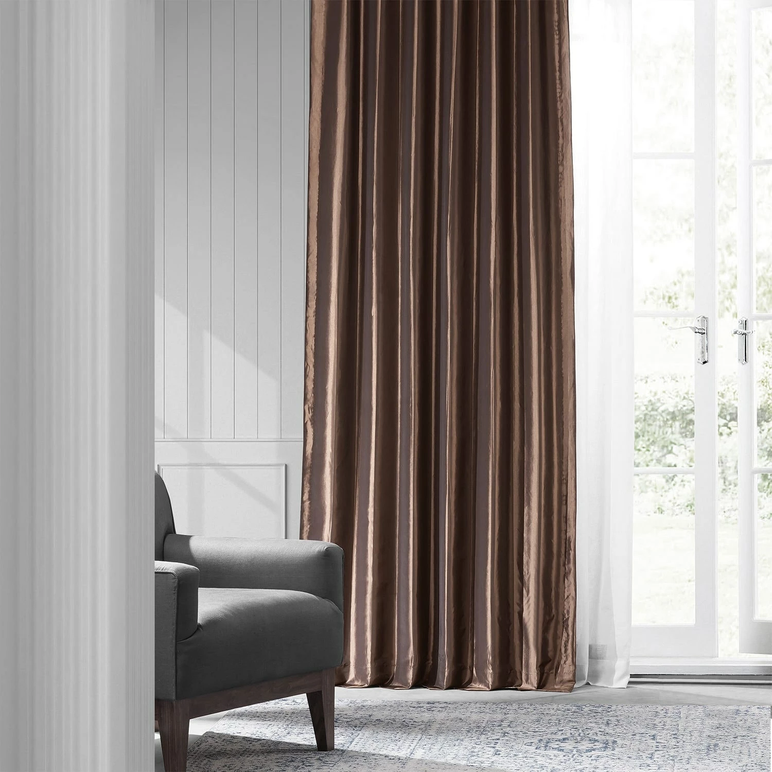Establish a relaxed ambiance in your formal or casual living space with this curtain panel from Exclusive Fabrics. The weighted bottom hem ensures the fabric hangs straight and prevents bunching. Polyester taffeta and nylon fabric brings softness to your room while boosting privacy.