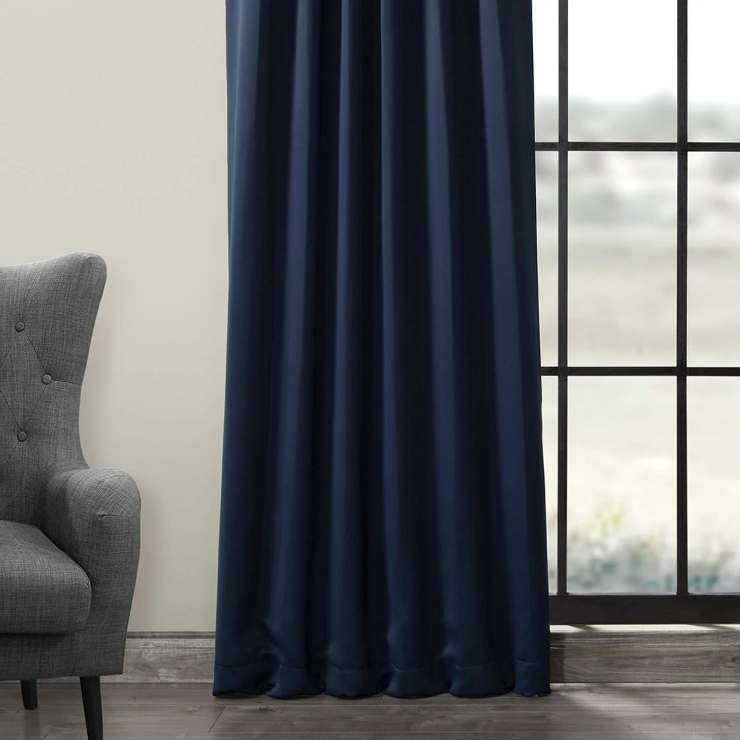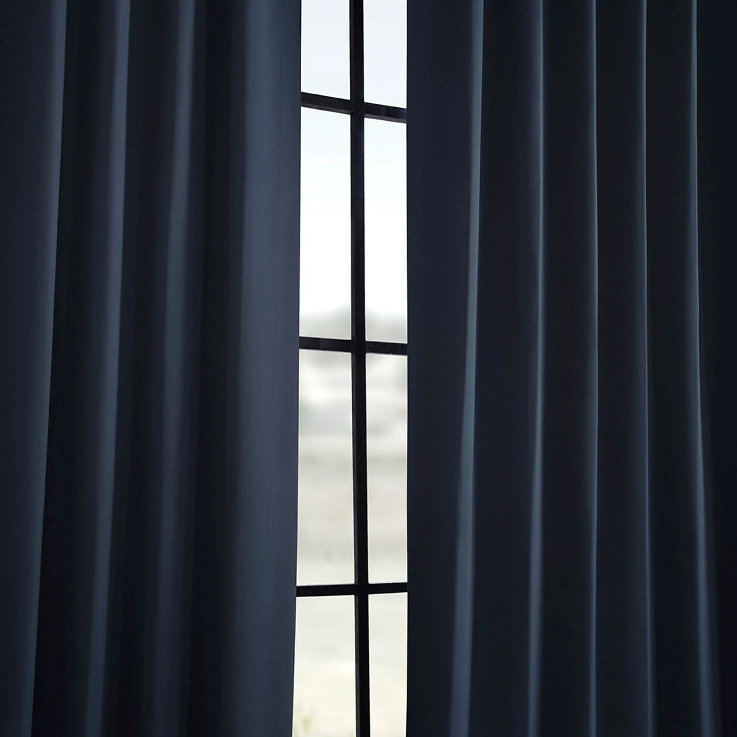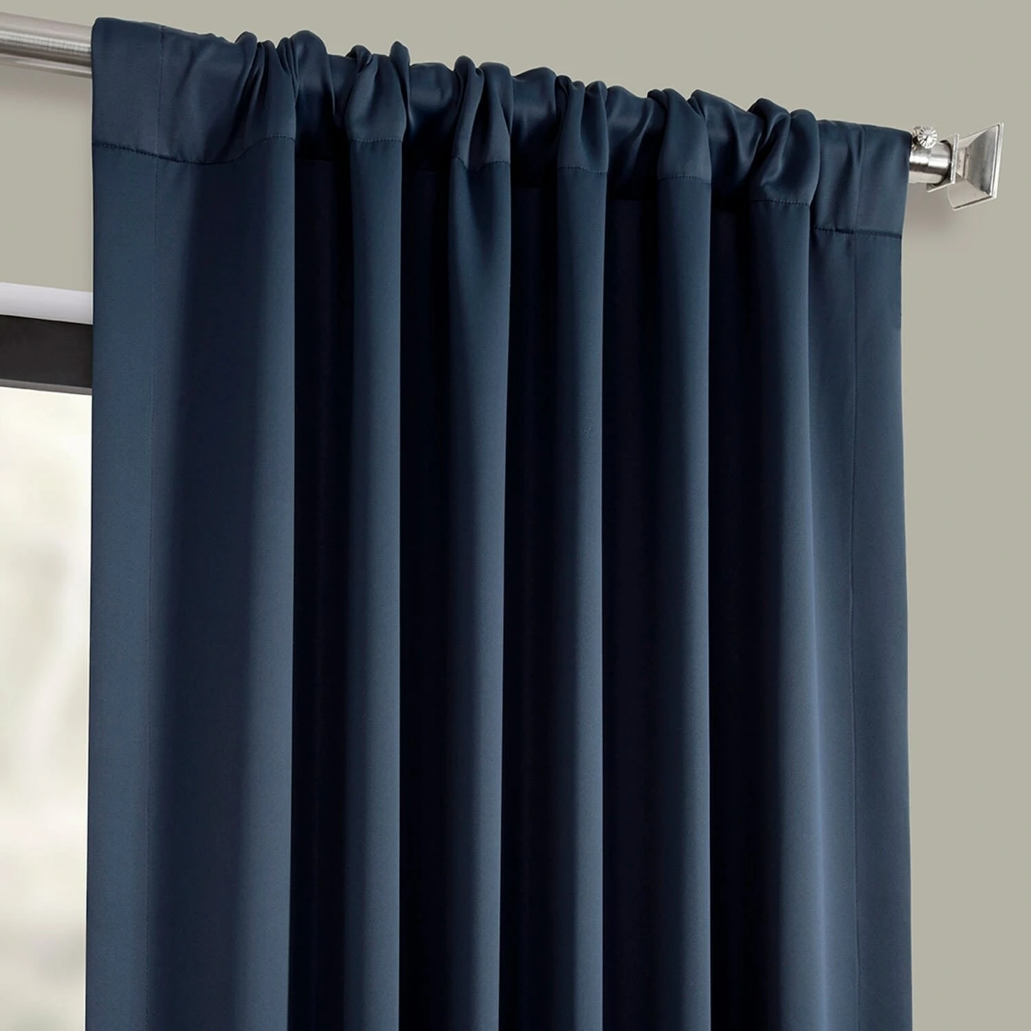 Lower your power bills and gain greater control of ambient light with these thermal blackout curtains. The curtains help to control the temperature of a home so that you won’t have to keep handing out money for your power bill, while the blackout feature will help you to sleep more soundly by blocking out all ambient light. Woven from polyester in a solid navy pattern.ย