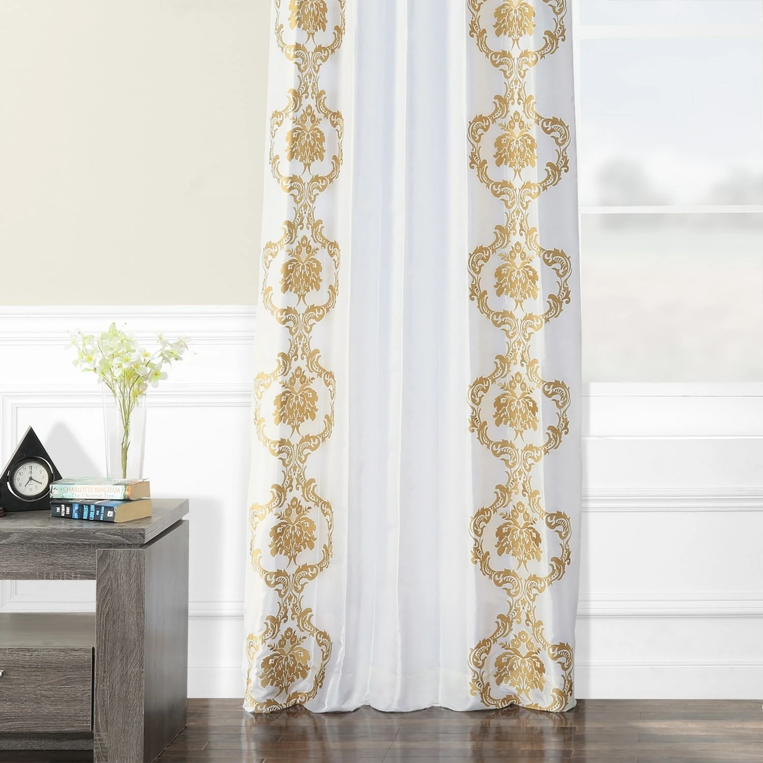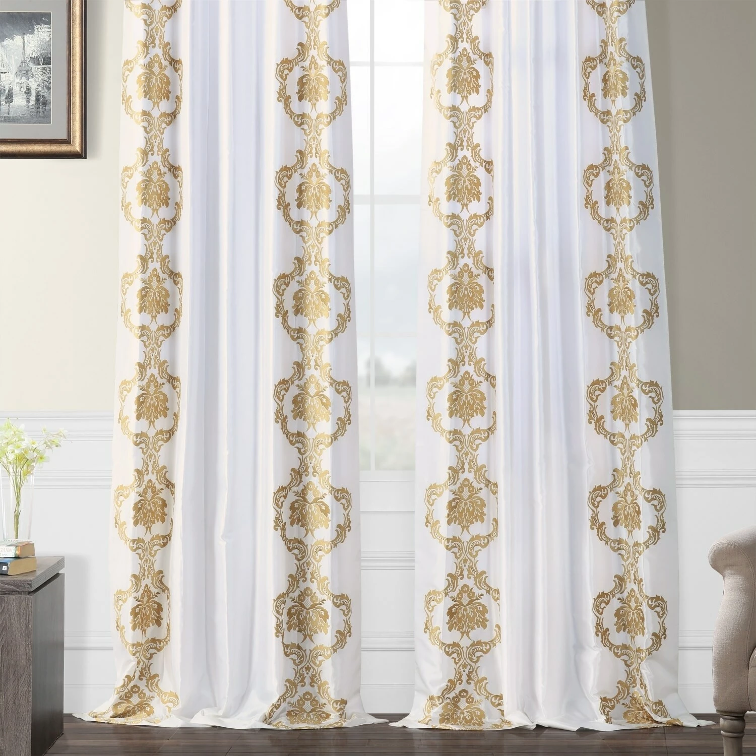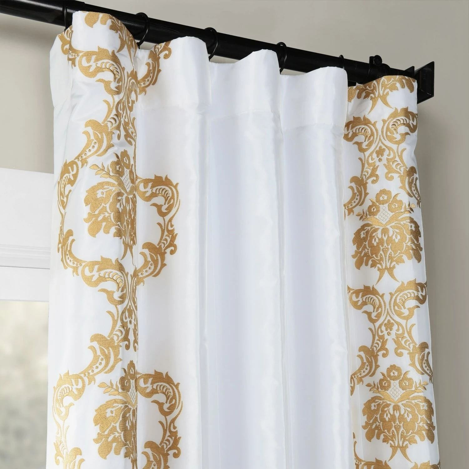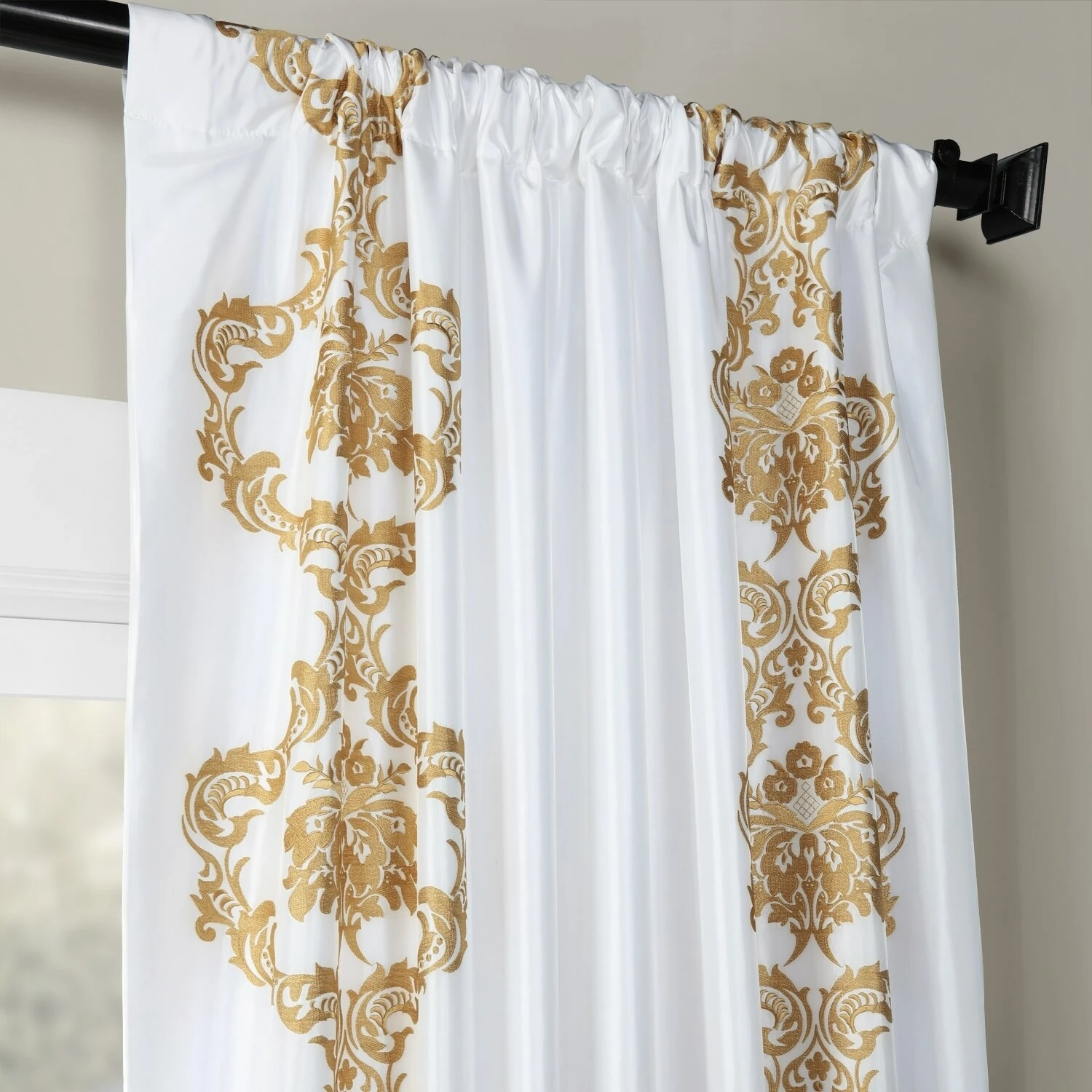Compose an Instagram-worthy bedroom space by dressing it up with this embroidered curtain panel from Exclusive Fabrics. Flaunting an embroidered damask pattern for a dainty look, this curtain brings timeless glamour to your bedroom ensemble. Functional as well as fashionable, this panel is made with a room darkening lining.