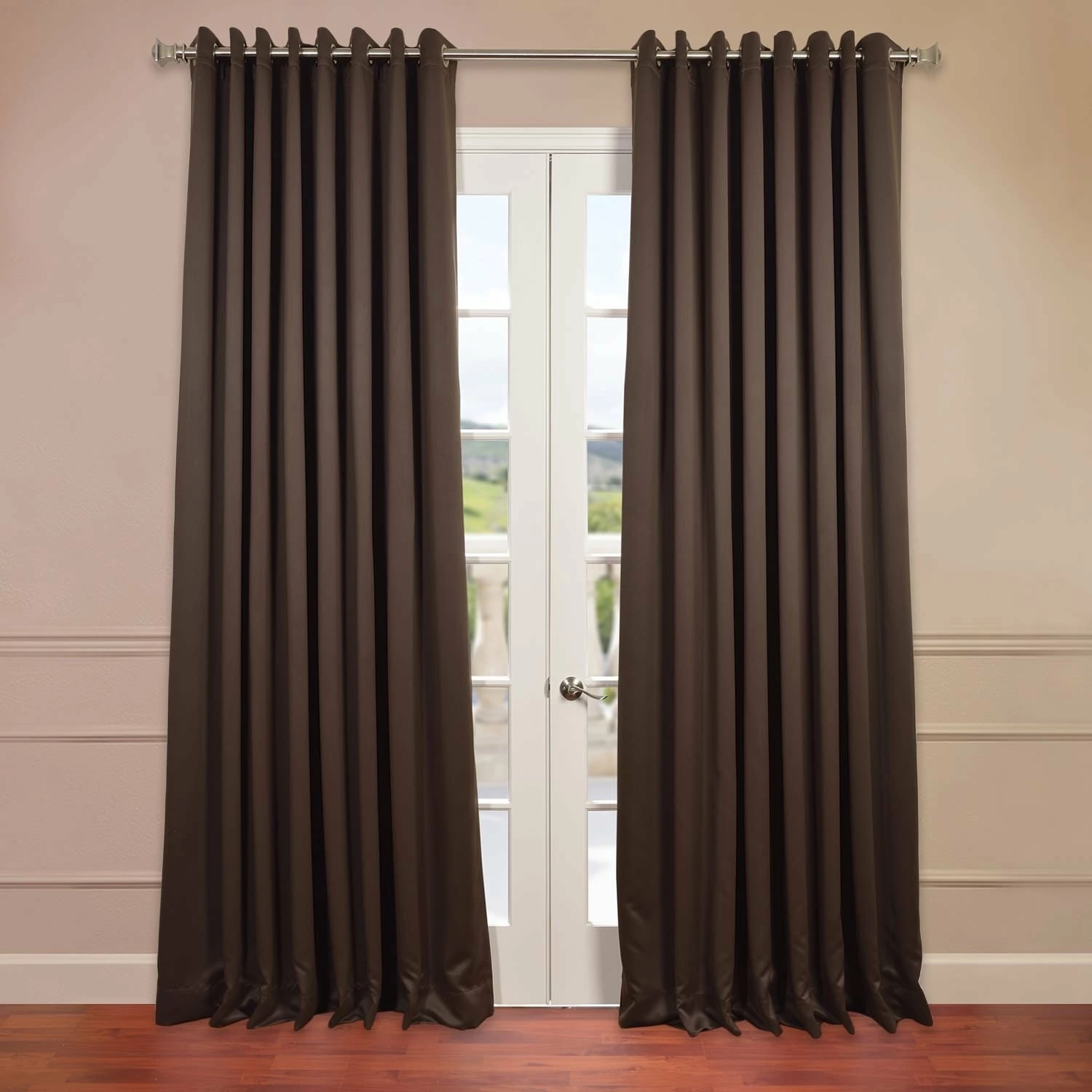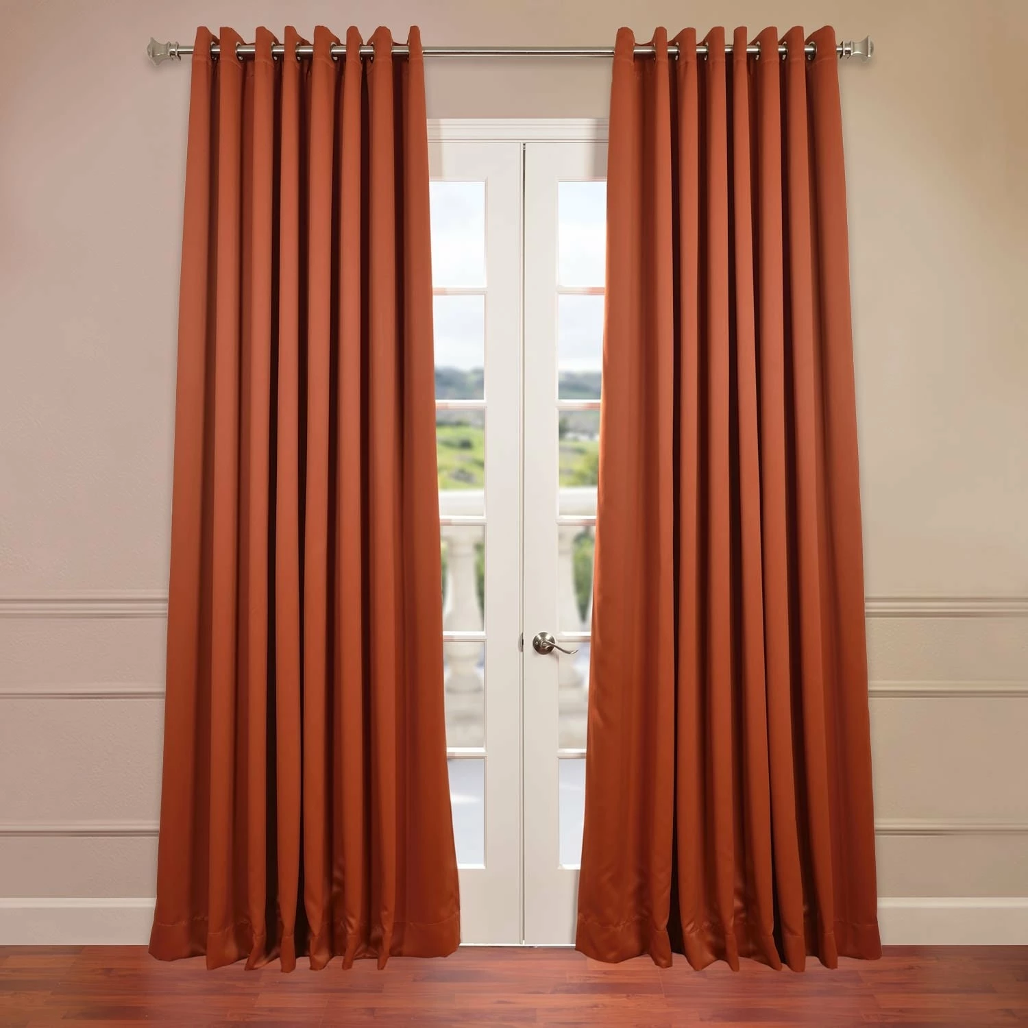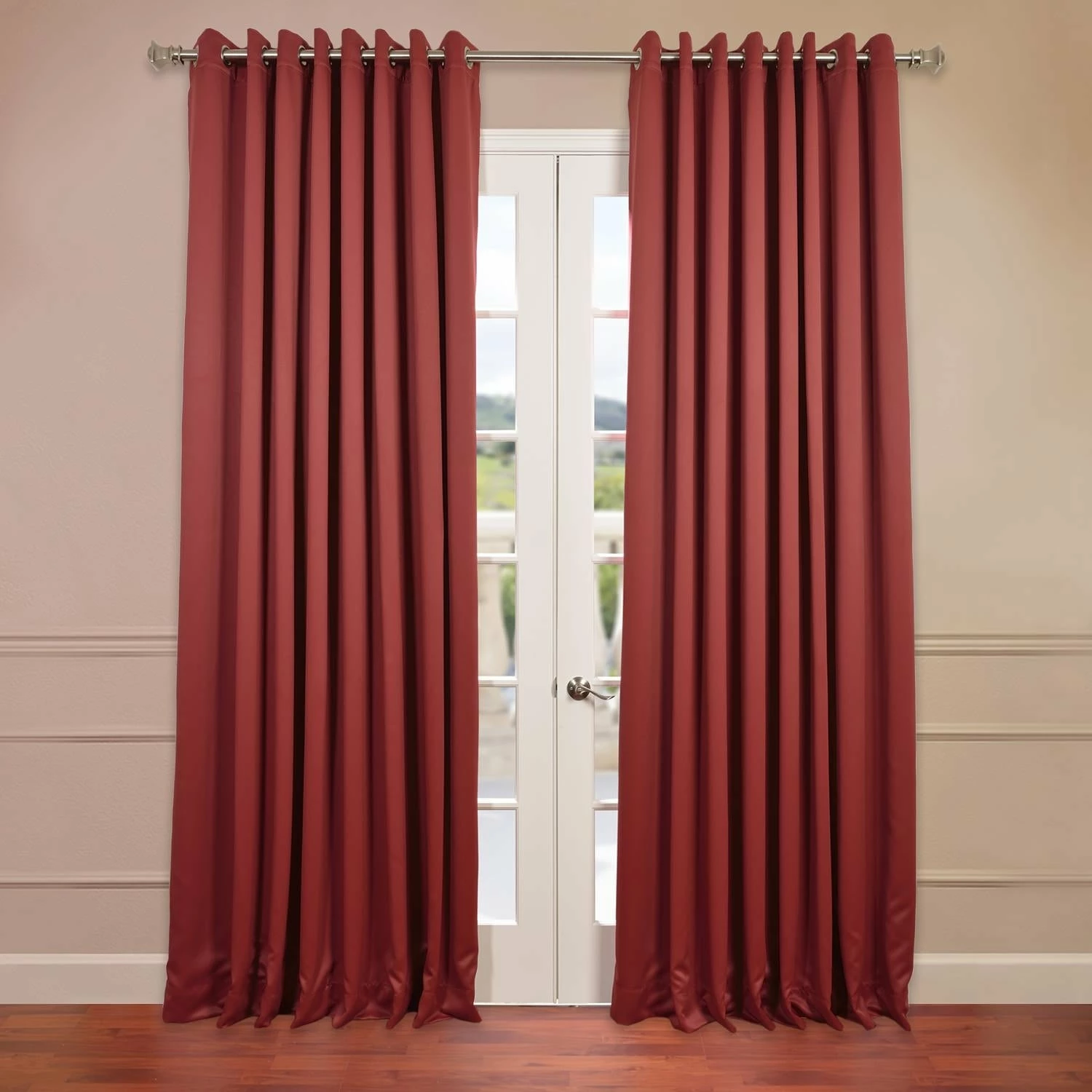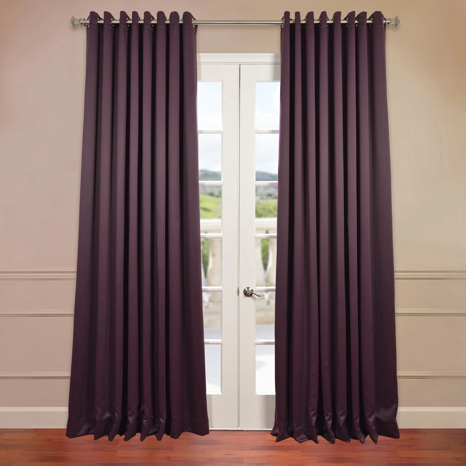 Lend an elegant, serene feeling to your decor with this extra-wide thermal blackout grommet curtain panel. The thick fabric blocks out harsh sunlight and provides total darkness when closed, and the curtain helps insulate your home to cut down on utility bills. Available in a range of colors, the curtain will blend with any decor with flowing, elegant grace.
