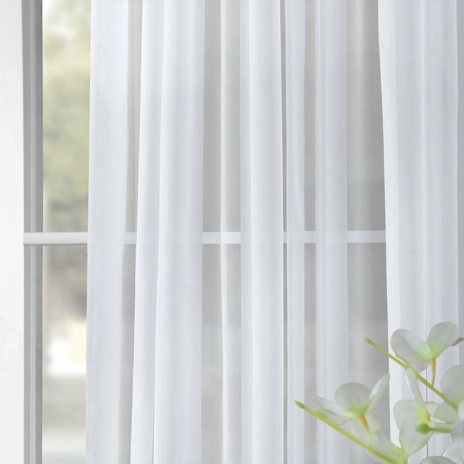 Create an airy ambiance with this sheer white curtain panel from Exclusive Fabrics. Woven from a polyester blend for added resilience, this voile curtain allows light in for a gentle glow. Featuring a hemmed base for a polished appearance, this extra-wide panel sports a pole pocket with back tabs for an elegant, rippled look.