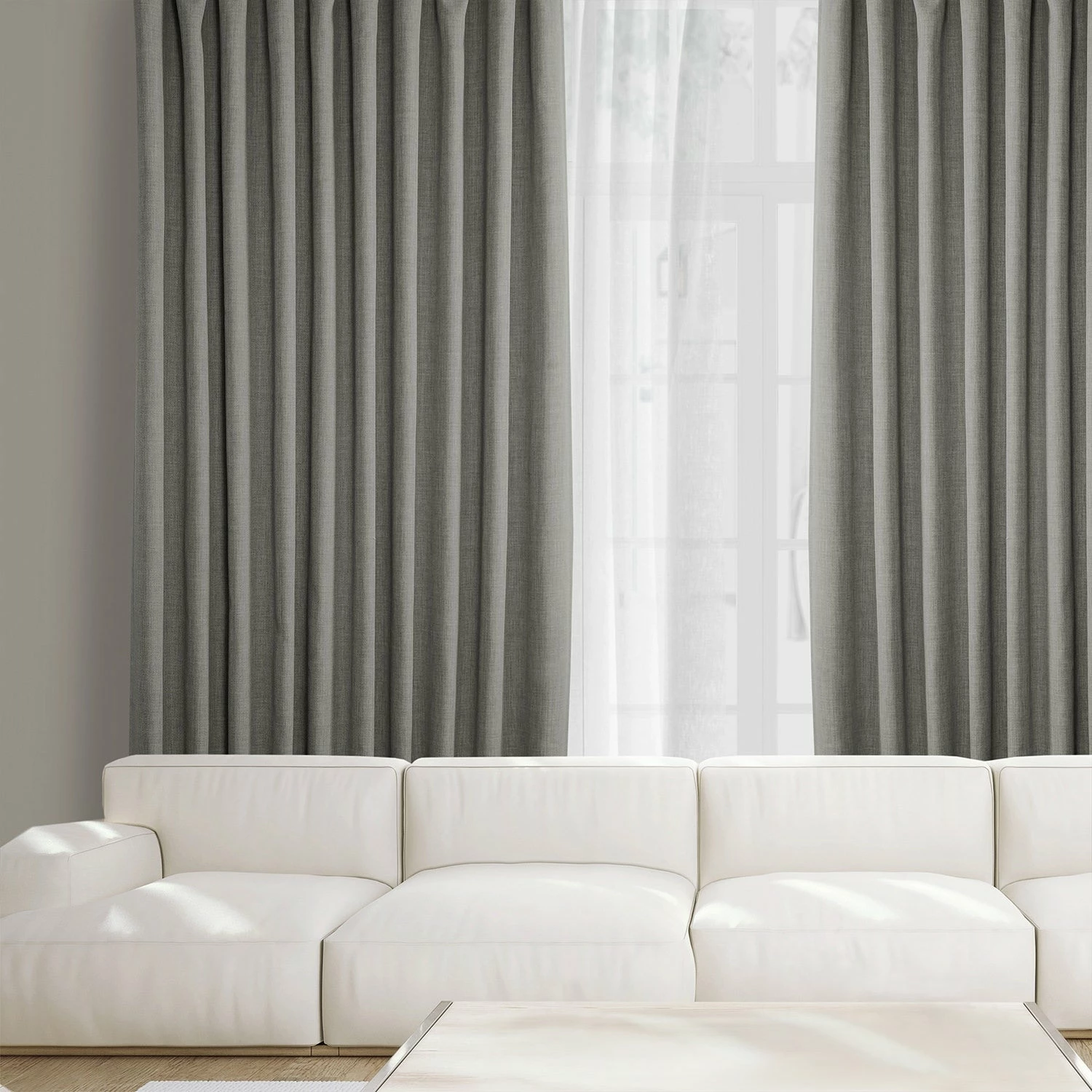Casual elegance meets practical design in this room darkening curtain panel. The extra wide panel is crafted from faux linen polyester, available in a variety of stylish colors, perfect for adding sophistication to your decor while darkening your room. The curtain panel is topped with a 3-inch rod pocket with back tabs and a hook belt for versatile hanging.