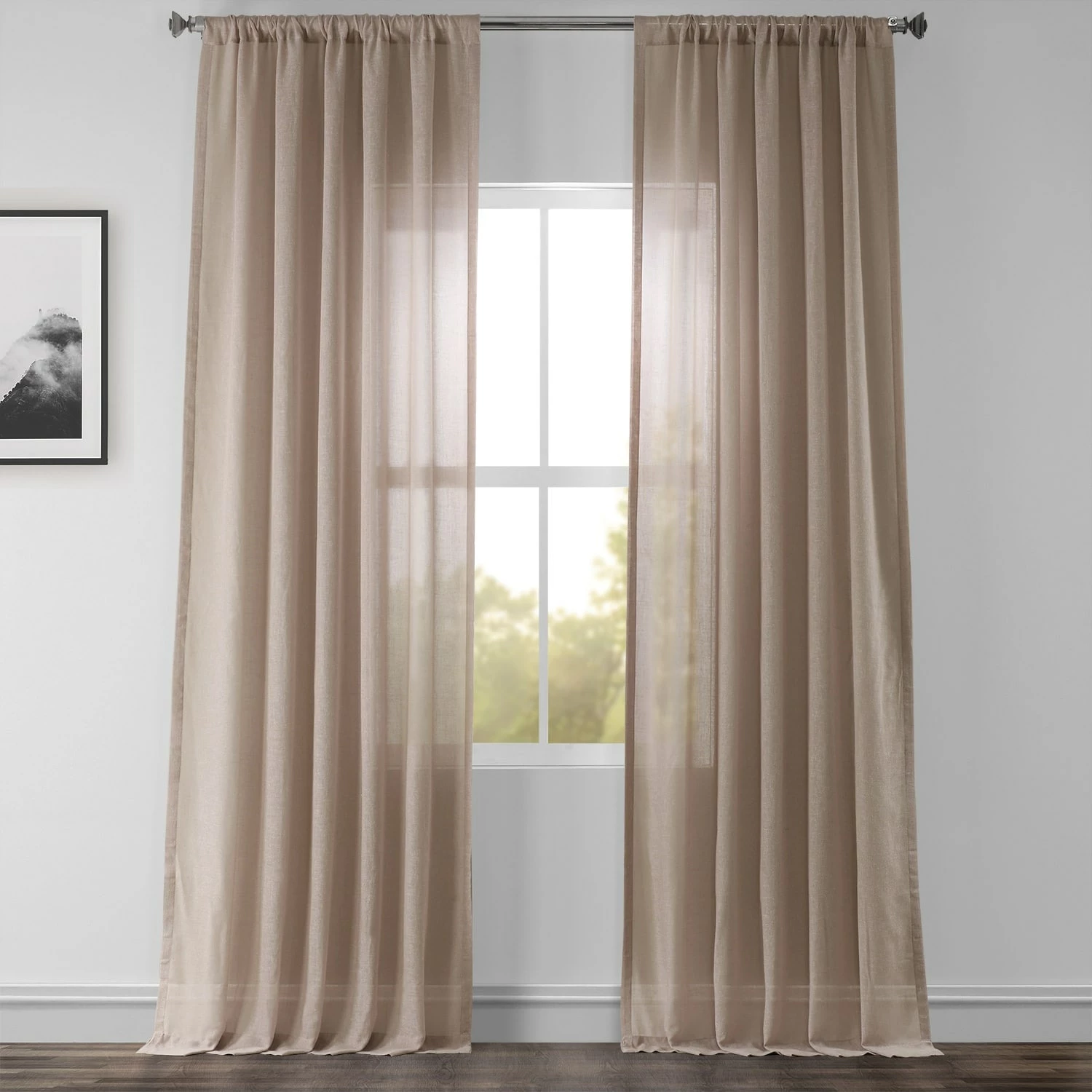Lend your home a relaxed feel with this Exclusive Fabrics sheer curtain panel. The lightweight faux linen gently diffuses light from outside, brightening up your room with a soft glow. An integrated rod pocket at the top makes installation easy, or you can hang the panel using clamped curtain rings for a modern look.