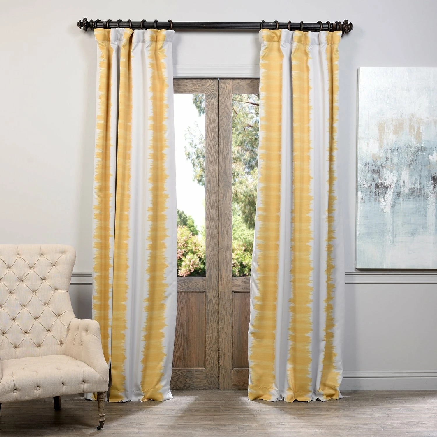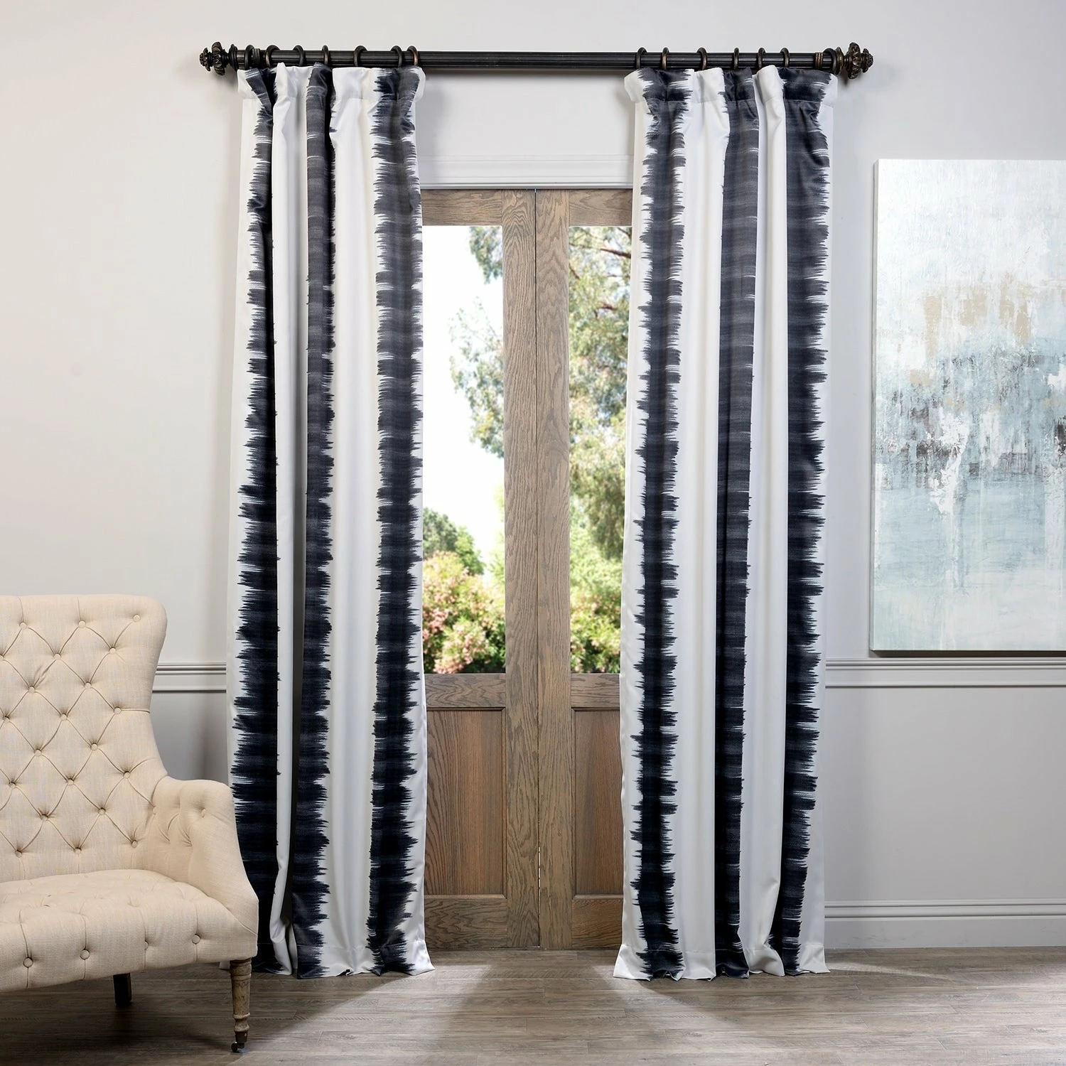 Introduce the finishing touch to your eclectic living room theme using this curtain panel pair from Exclusive Fabrics. These Flambe room darkening curtains block the sunlight, leading to better temperature regulation in the room while enhancing your decor with a modern striped pattern. A hidden rod pocket offers easy installation options.