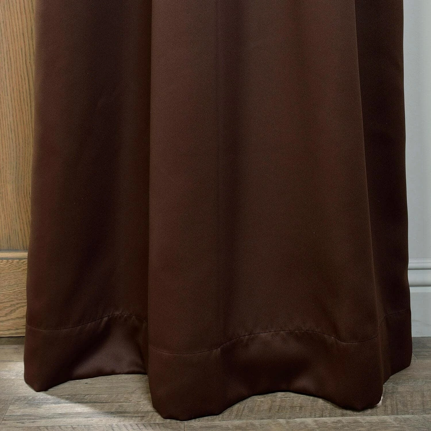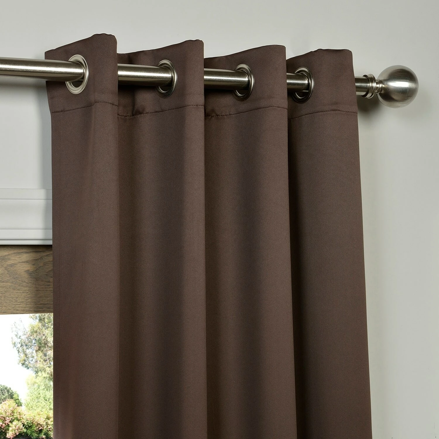 Keep the temperature of your room comfortable by installing this set of two Exclusive Fabrics designer blackout curtains. These curtain panels come in a deep java brown color that pairs well with formal or traditional decors. Polyester material ensures durability, while the eight grommets make it easy to slide these panels onto a curtain rod.