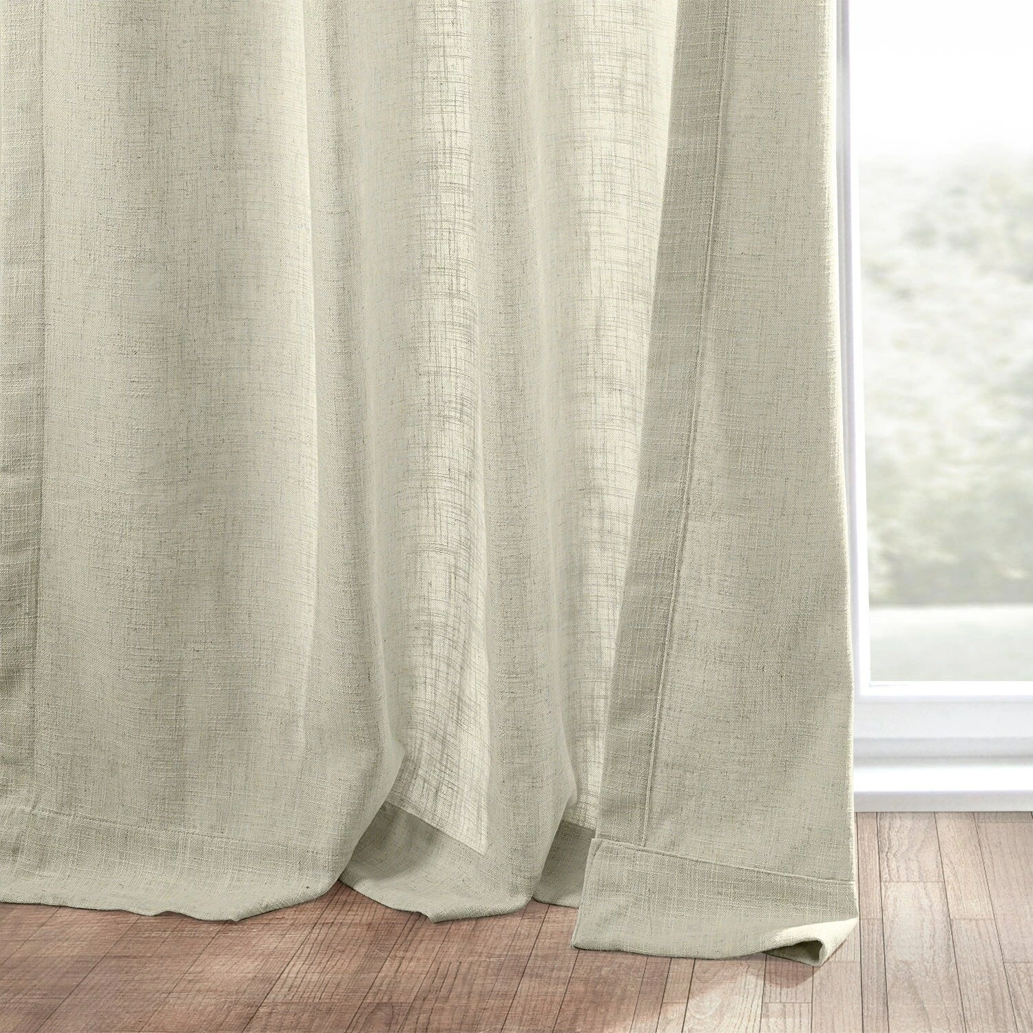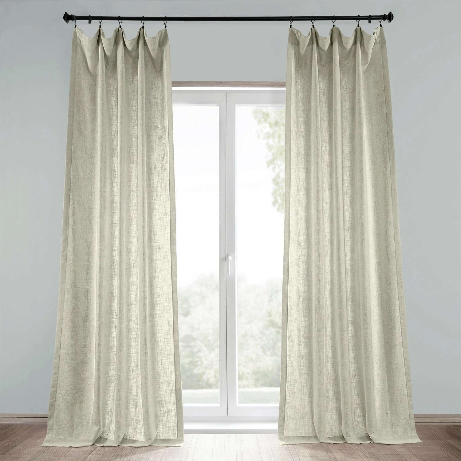 When you want glamor, style, and modern yet classic curtains, these natural linen blend panels are an excellent choice. This concise collection features polyester blended with linen for a resulting luxurious, supple, curtain. They’re lovely for rooms that get tons of sun exposure, as they’ll let that natural light stream in, but they’re great for rooms that don’t get much sun because the sun you do get will be maximized. These curtains have our most versatile header, a rod pocket with back tabs and hook belt and a weighted hem to hang nicely and keep them in place. There is a 3.5″ pole pocket in the header and back tab loops that will accommodate up to a 1.5″ diameter curtain rod with no additional hardware. Additionally, these panels can be attached to curtain rings from clips or by running an S-shaped drapery pin through the back of the header and hanging the drapery pin through an eyelet on the rings. These curtains are sold with no hardware like rings or hooks. We try to provide the most accurate digital images possible. Color may appear slightly different from one screen to another based on differences in computer monitors, brightness, and other selected settings so there may be variations in color between the actual product and the way it appears online.