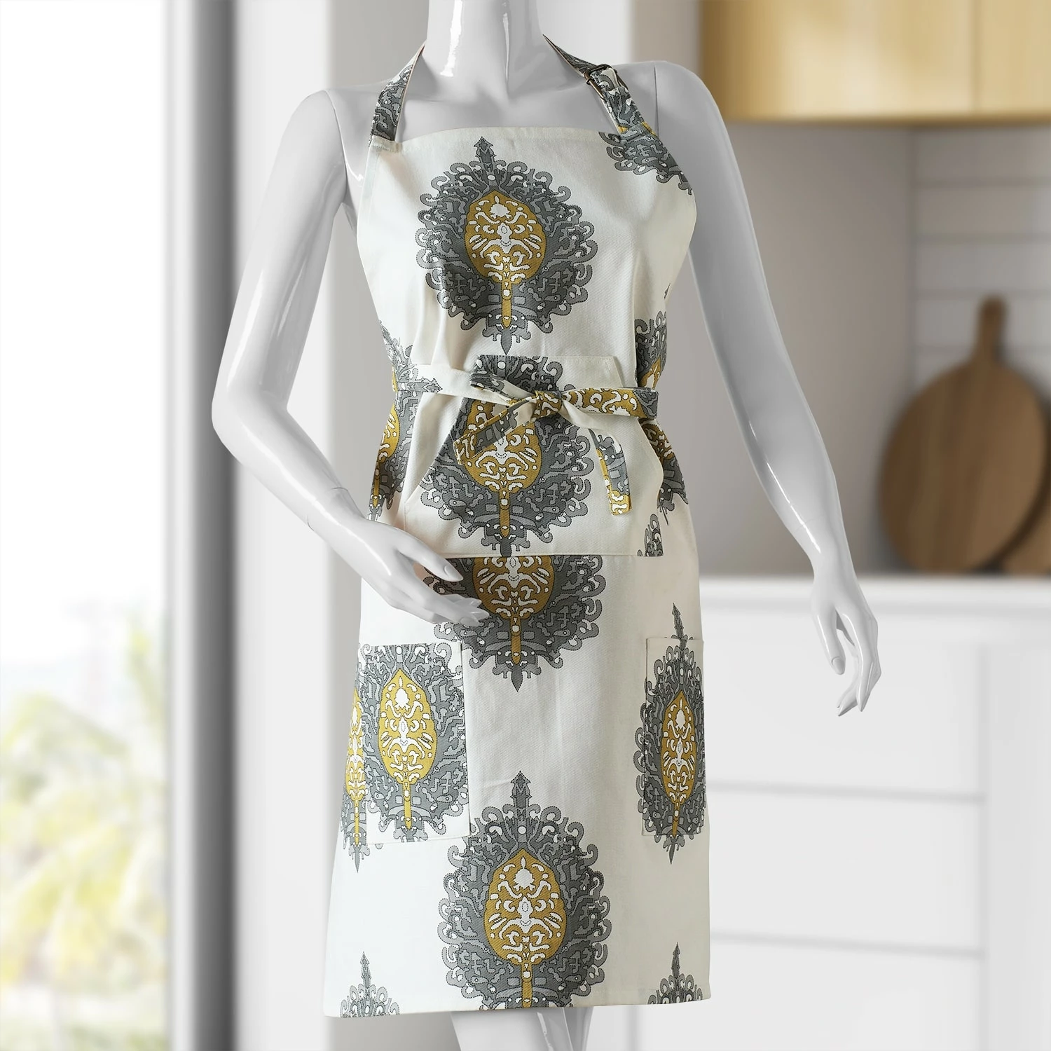 Cook, Bake, Craft! Home decor fashion apron in our decorative prints to co-ordinate with our best-selling printed curtains & drapes collection. This 100% cotton bib apron has an adjustable neck strap with an attractive buckle and ties at the waist for a perfect fit. Three unique pockets to hold this and that. We make the connection between a low price tag and high purpose. Our 3-pocket bib aprons are fashionable and functional from kitchen-to-dining room and in the workshop too.