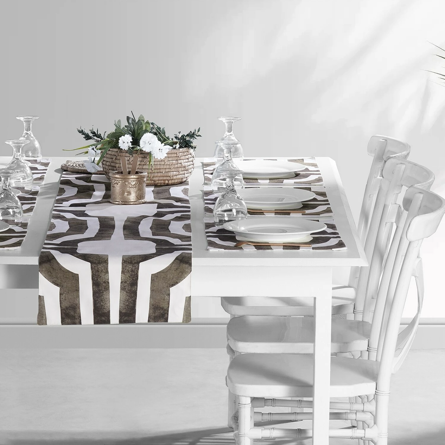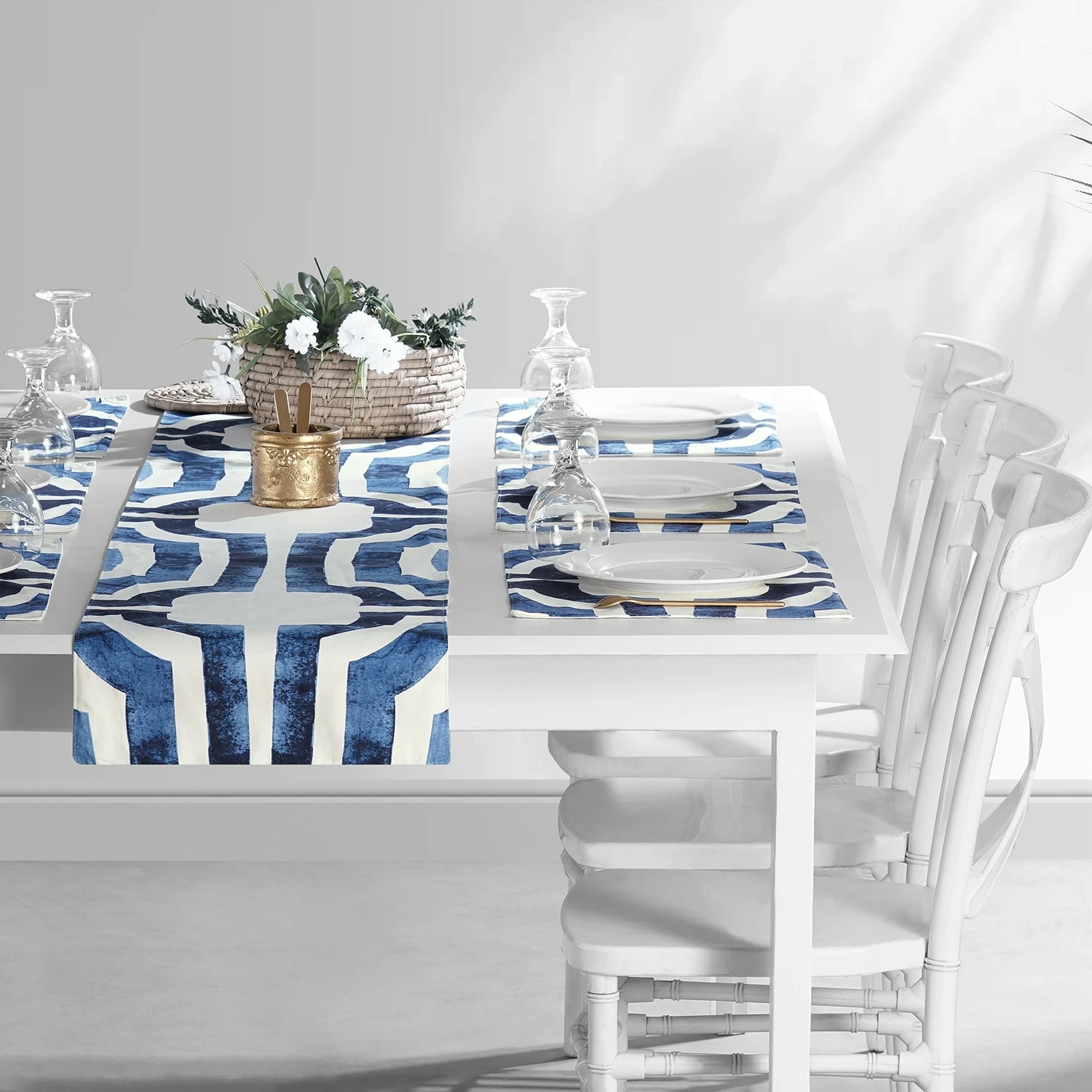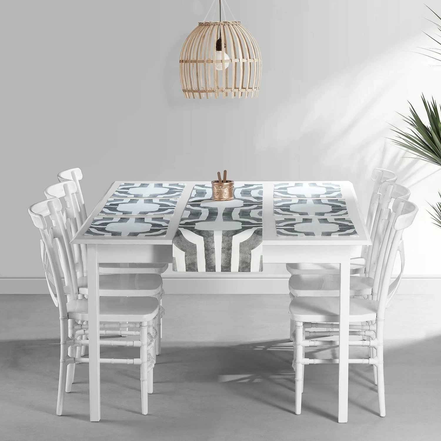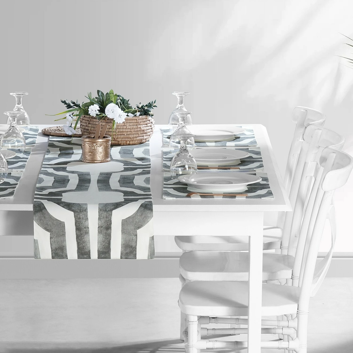 Table runners are a great way to bring color and flair to any dining table. The geometric pattern can be paired with matching curtains and cushion covers to bring wholeness to your dining experience.