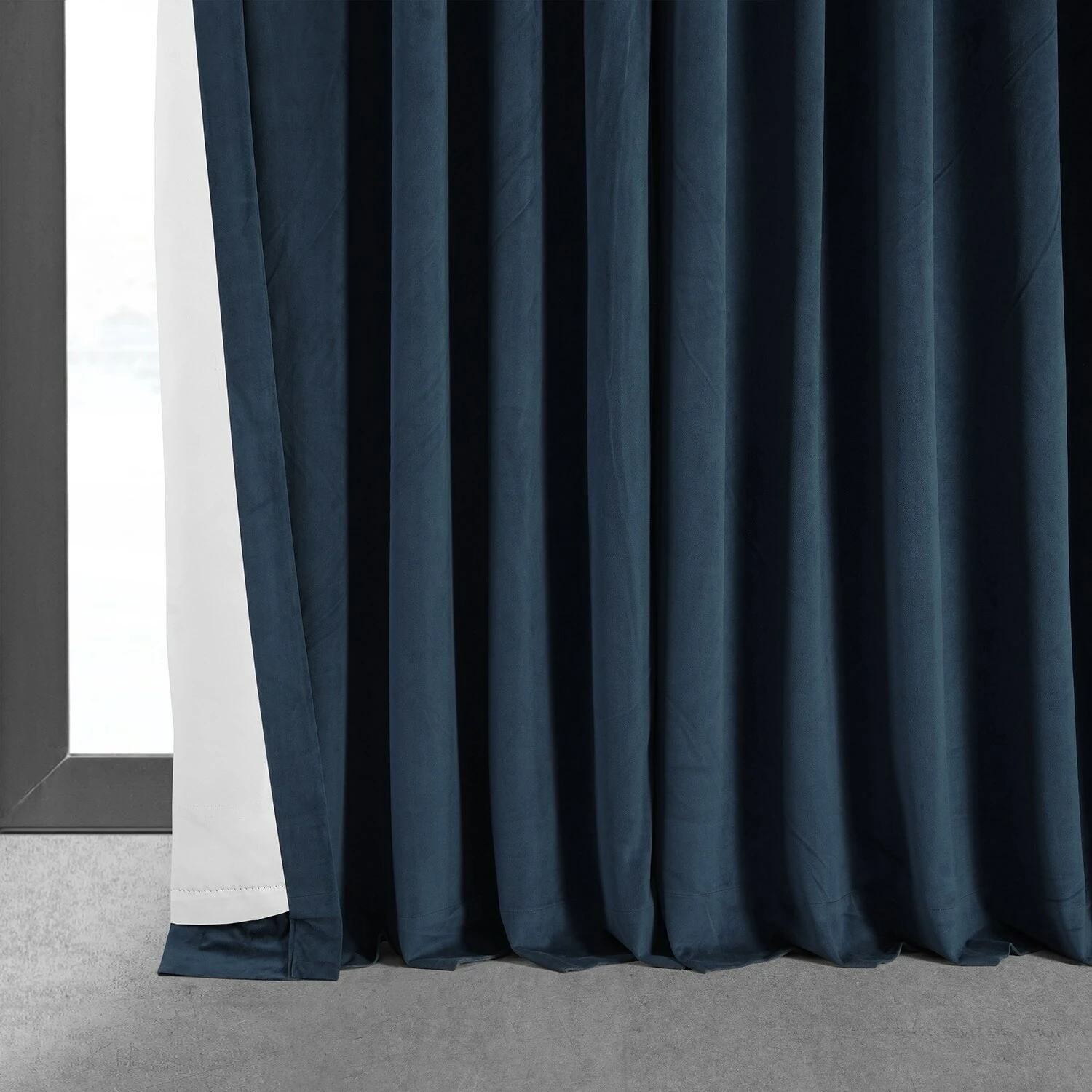 - Plush velvet panel features a blackout lining for better sleep and energy-saving efficiency