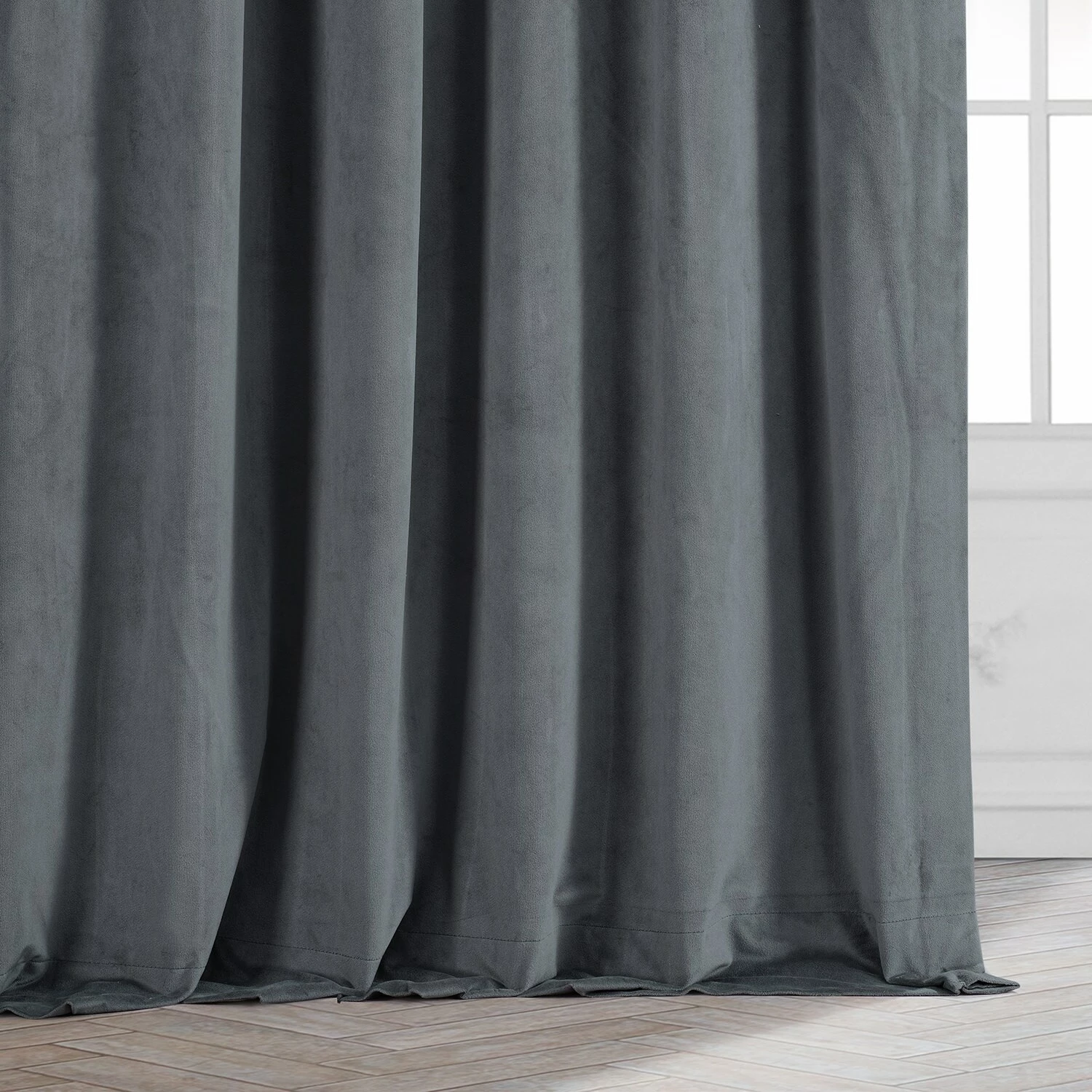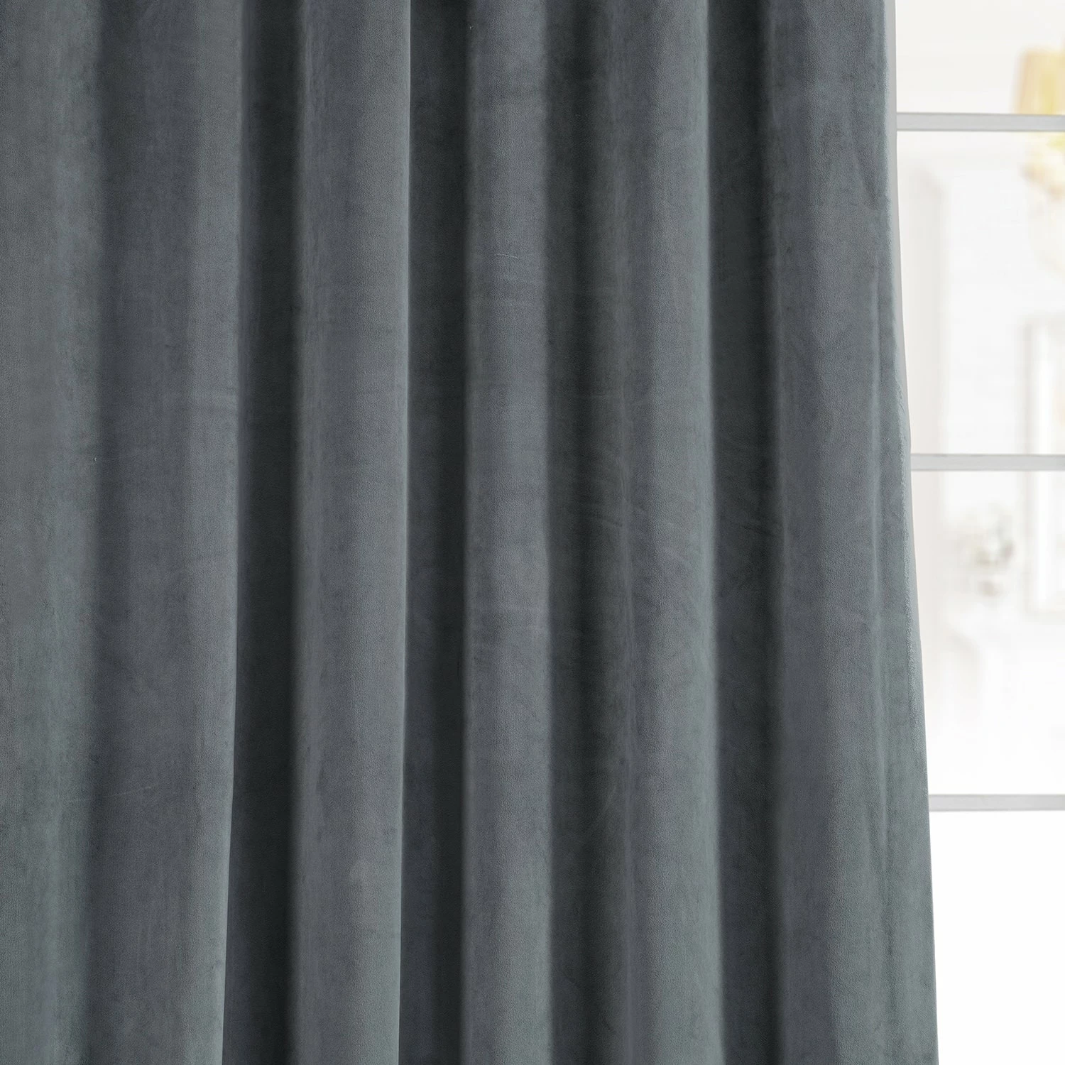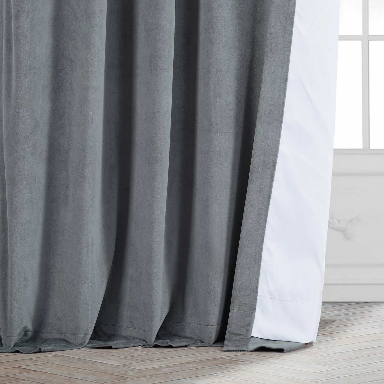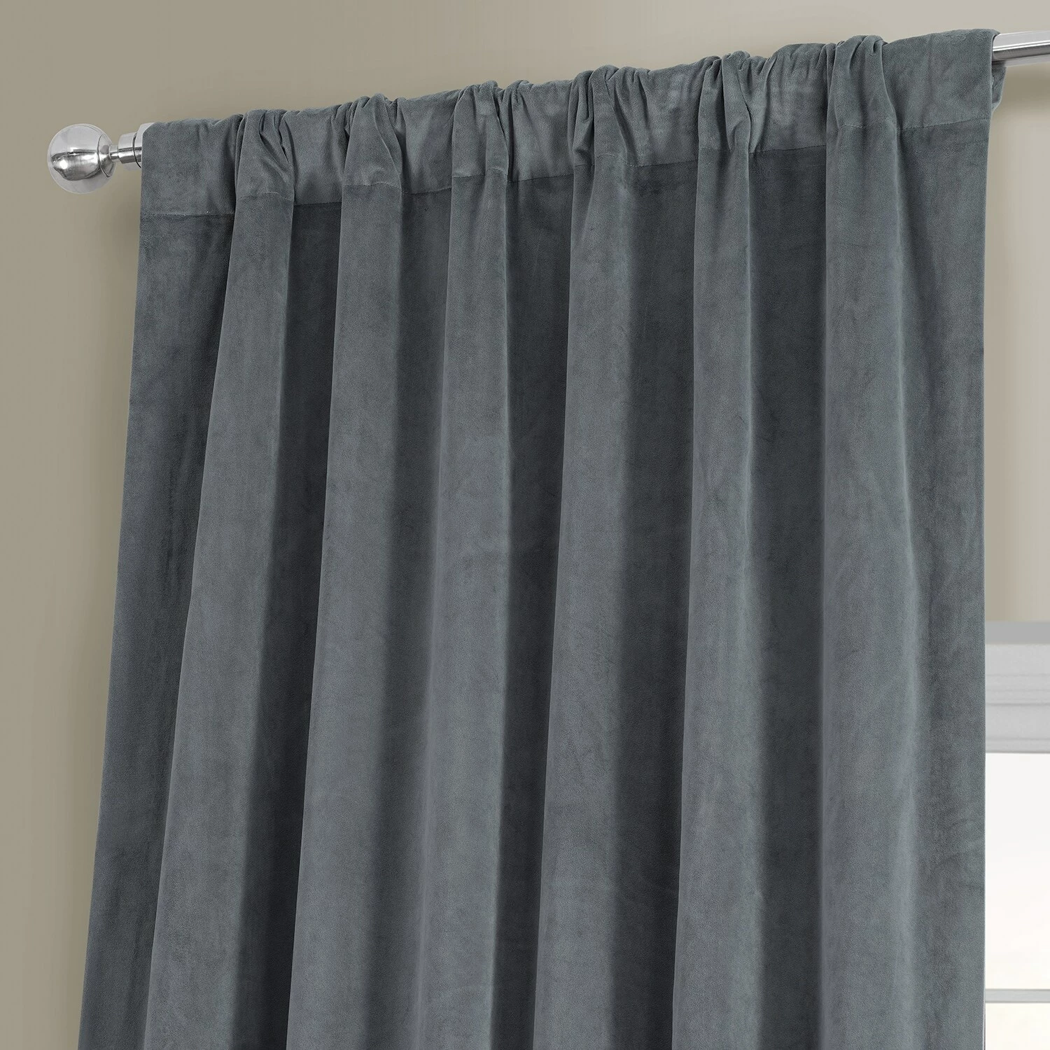 Keep your home cool and dark with this blackout curtain panel. Designed to keep your temperature and light levels where you want them, this panel is easy to hang thanks to its strong, reinforced rod pocket header. This panel is made of durable, energy-efficient polyester and velvet in easy-to-match grey to fit your decor.