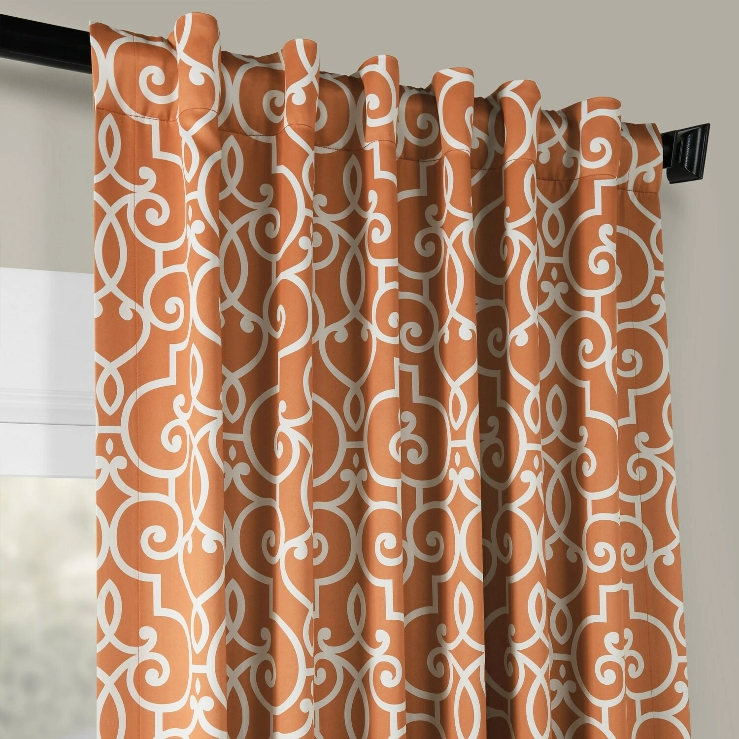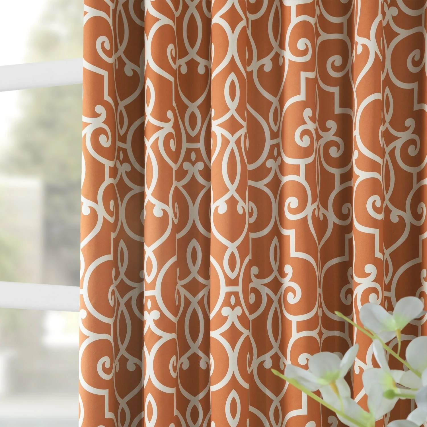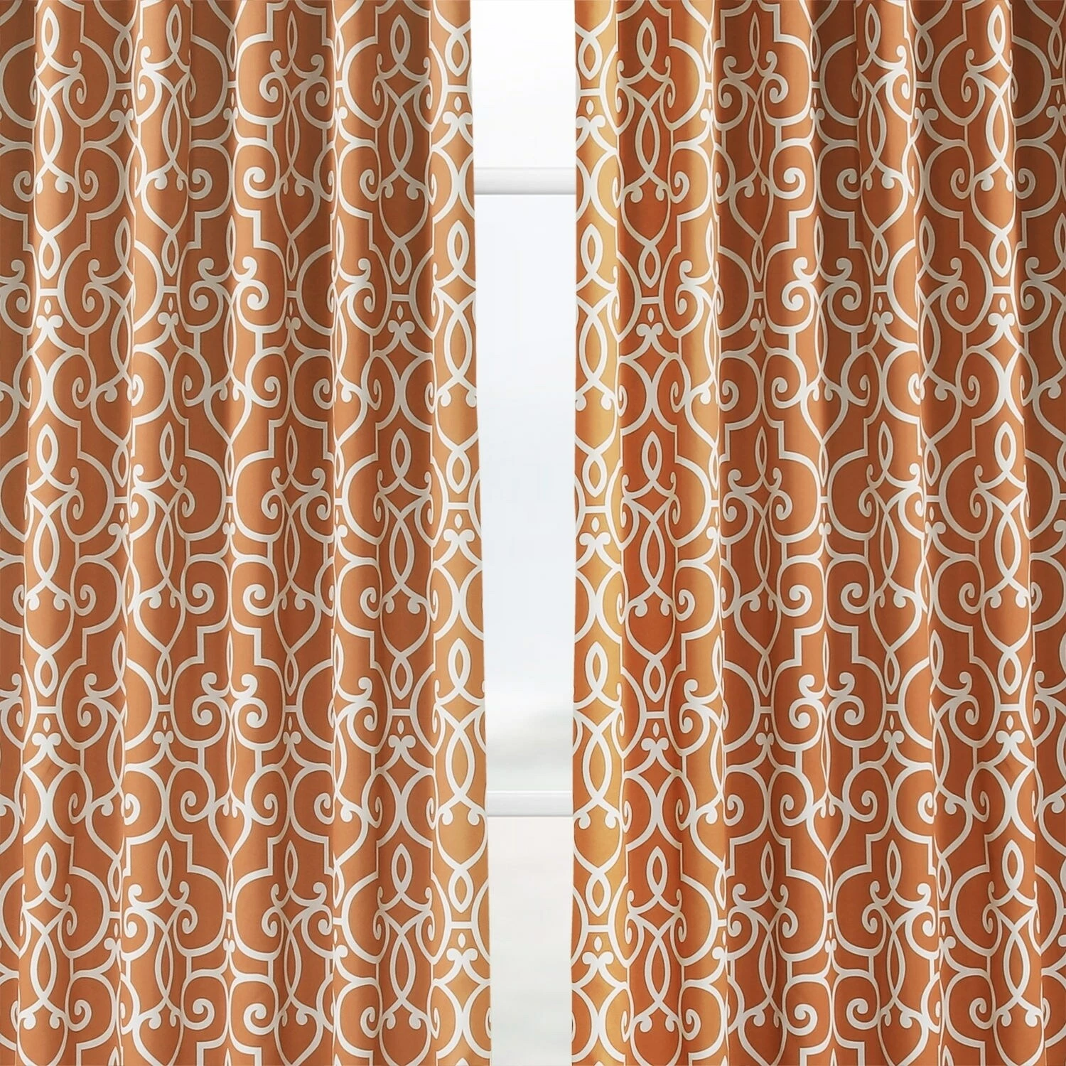 The Nouveau room darkening curtain panel pair will add some interest to your living space with this contemporary rust colored nouveau print. The fabric is super soft with a refined texture made with a special polyester yarn. The rust nouveau pattern will complement your chic style. These curtains keep the light out and provides optimal thermal insulation. These curtains come as a pair of panels per package and include a rod pocket sewn into the drape.