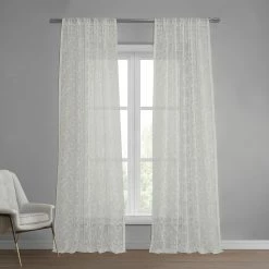 Soft, supple and translucent, these beautiful Patterned Faux Linen Sheers will add interest and elegance to any window. Offered in medley of designs from modern geometrics to romantic florals, these sheer curtains can be an added decorative touch when paired with solid curtains, or can be a charming, elegant design element when hung all on their own.