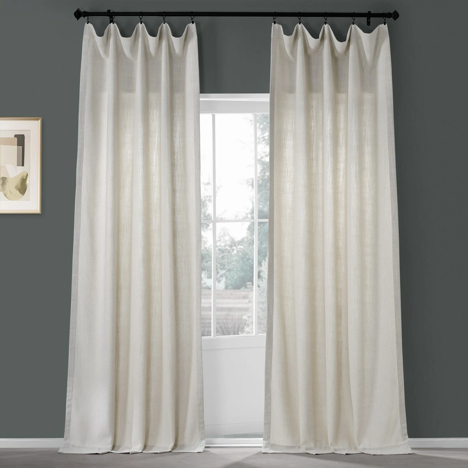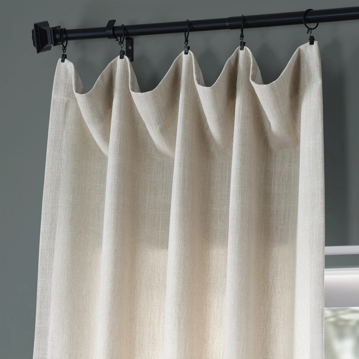 Our Pebble Weave Faux Linen Curtains bring rich texture to your home in contemporary designer colors. These light filtering linen textured panels have a weighted hem to hang nicely and keep them in place. These curtains have a rod pocket with hook belt. There is a 3″ pole pocket in the header that will accommodate up to a 1.5″ diameter curtain rod with no additional hardware. Additionally, these panels can be attached to curtain rings from clips or by running an S-shaped drapery pin through the back of the header and hanging the drapery pin through an eyelet on the rings. These curtains are sold as individual curtain panels with no hardware like rings or hooks. For a pair of curtains, you will need to order a quantity of two. We try to provide the most accurate digital images possible. Color may appear slightly different from one screen to another based on differences in computer monitors, brightness, and other selected settings so there may be variations in color between the actual product and the way it appears online.