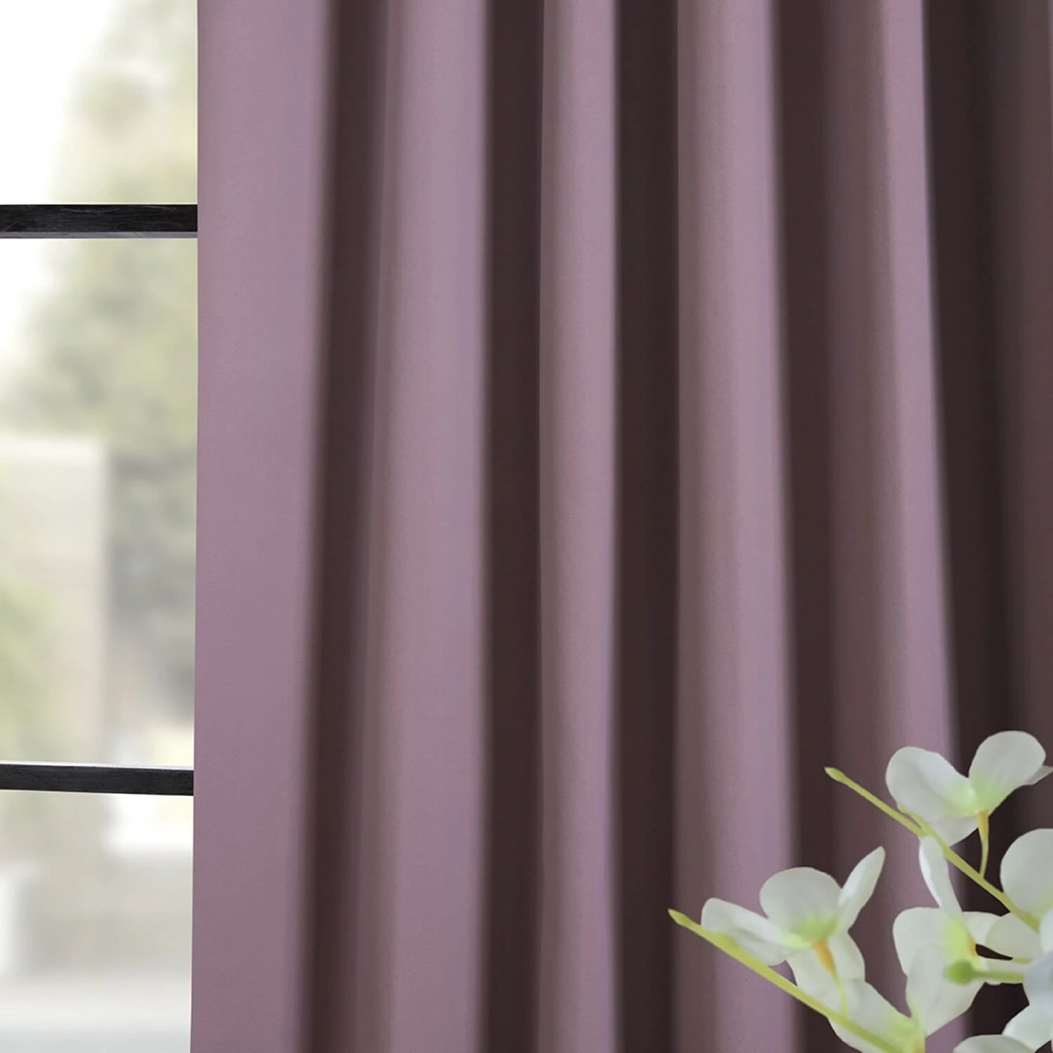Color your view with the beautiful dusty purple fabric on this blackout curtain panel pair. The energy-efficient blackout fabrication gives your space a darker look, reduces fading from UV rays, and helps control your home’s temperature for increased comfort. Choose between a back tab and rod pocket installation to customize the look of your window.