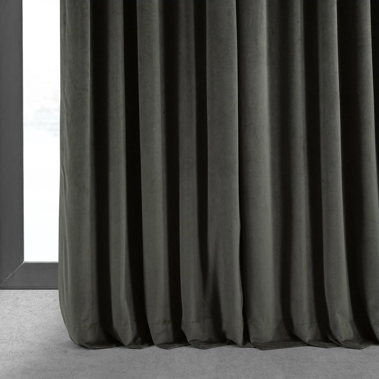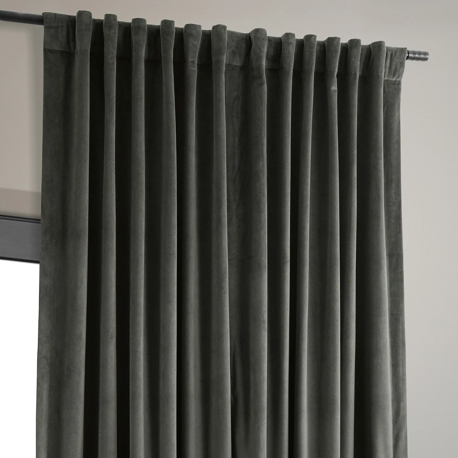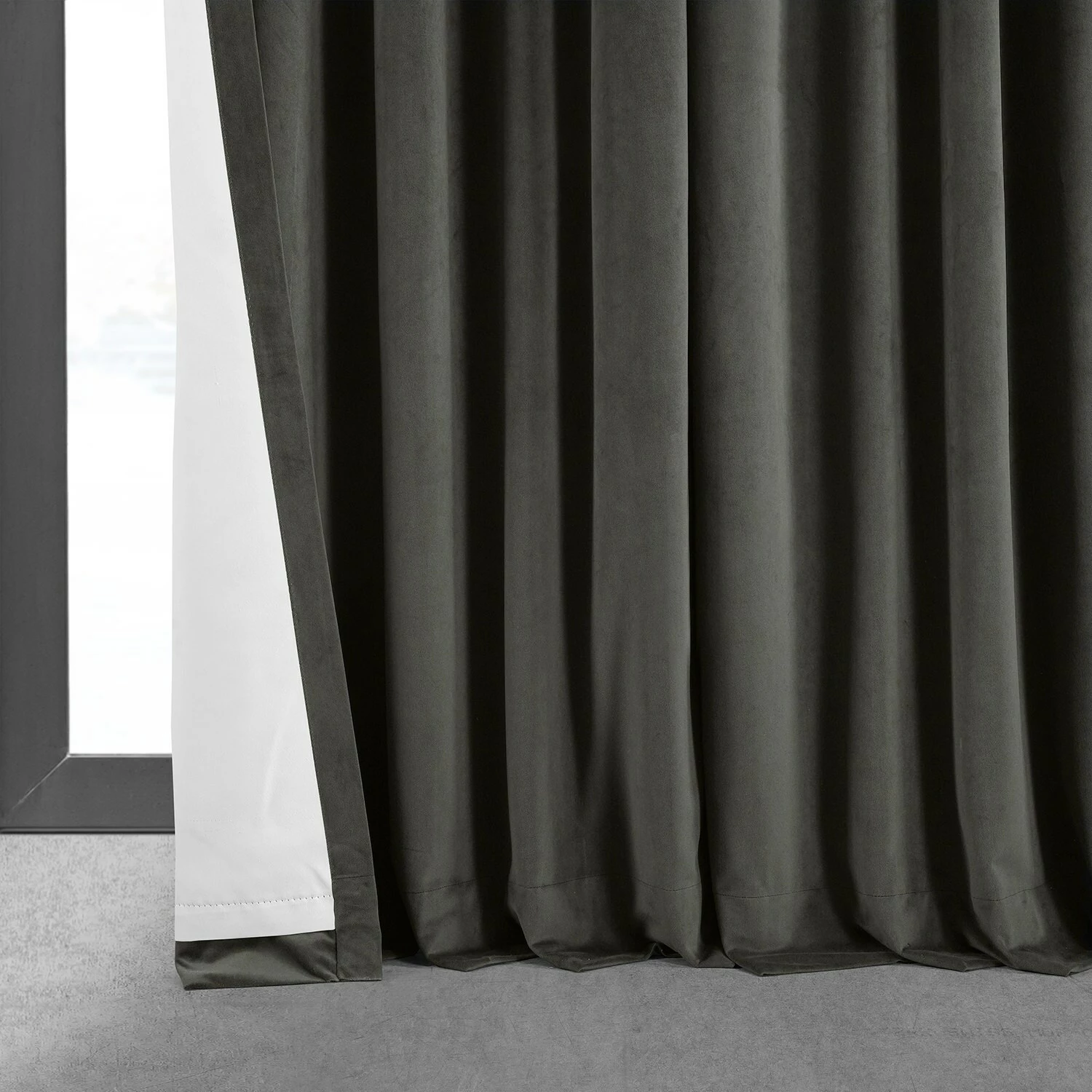 This soft plush blackout velvet curtain has a natural luster with a depth of color that creates a formal, polished look. Made of high-quality, poly velvet and soft flowing polyester blackout thermal lining. The curtains keep the light out and provides for optimal insulation. As a general rule, for proper fullness panels should measure 2-3 times the width of your window/opening.