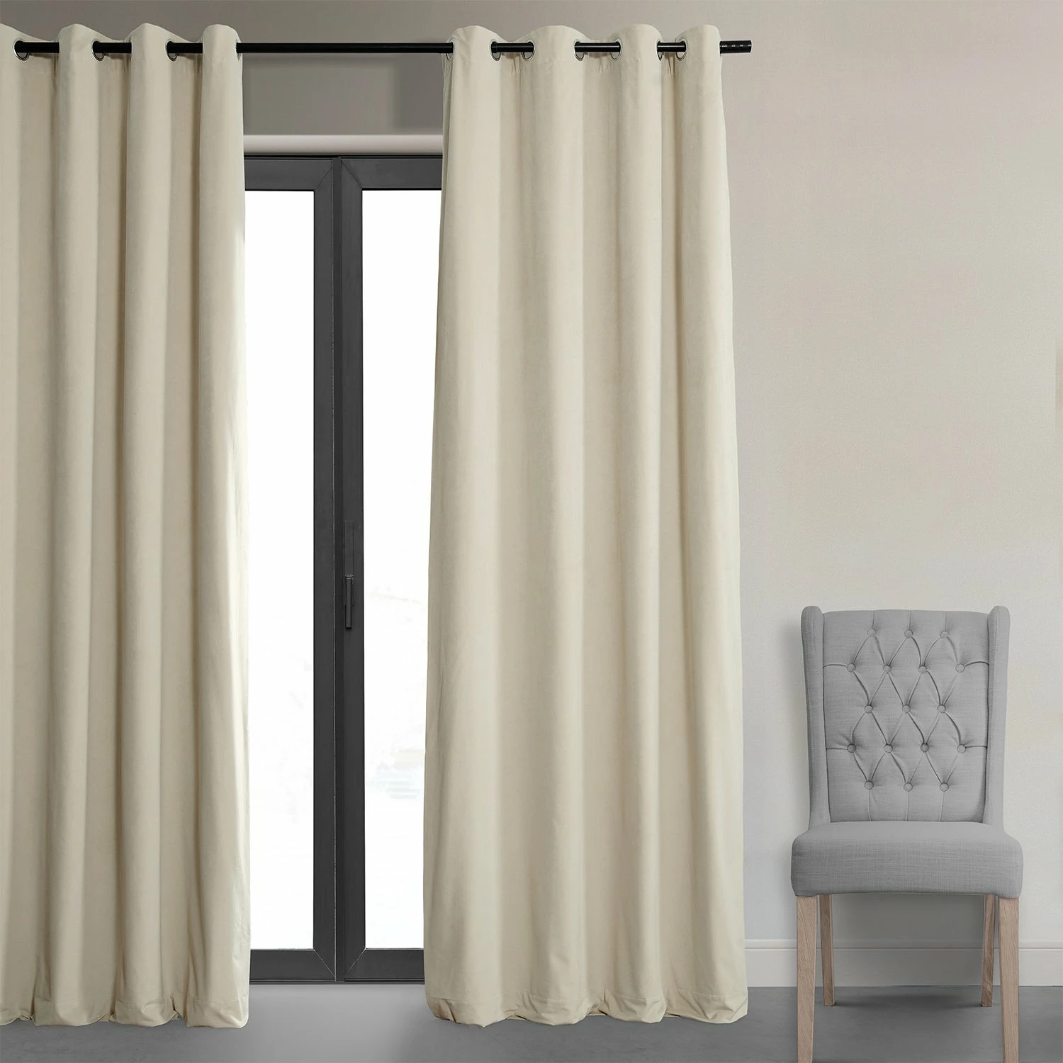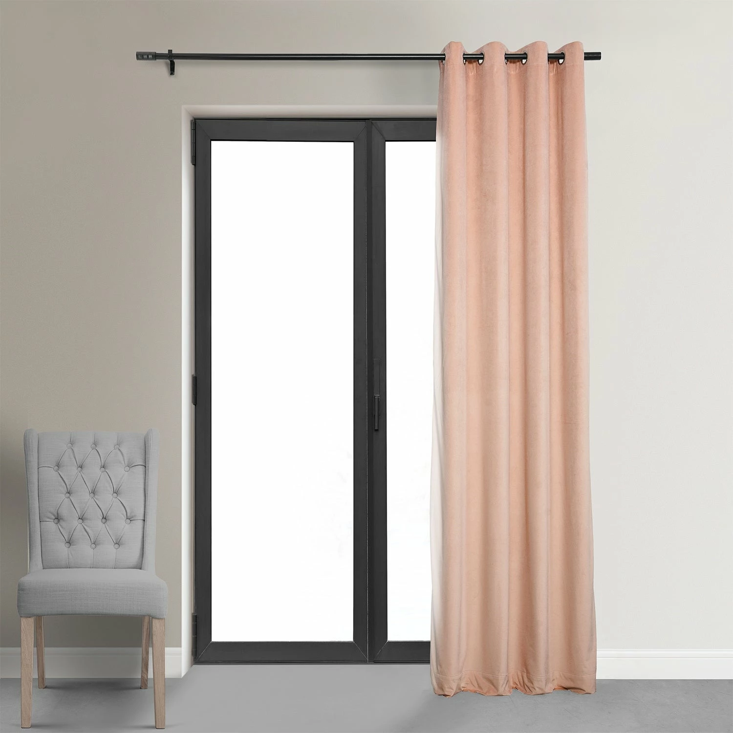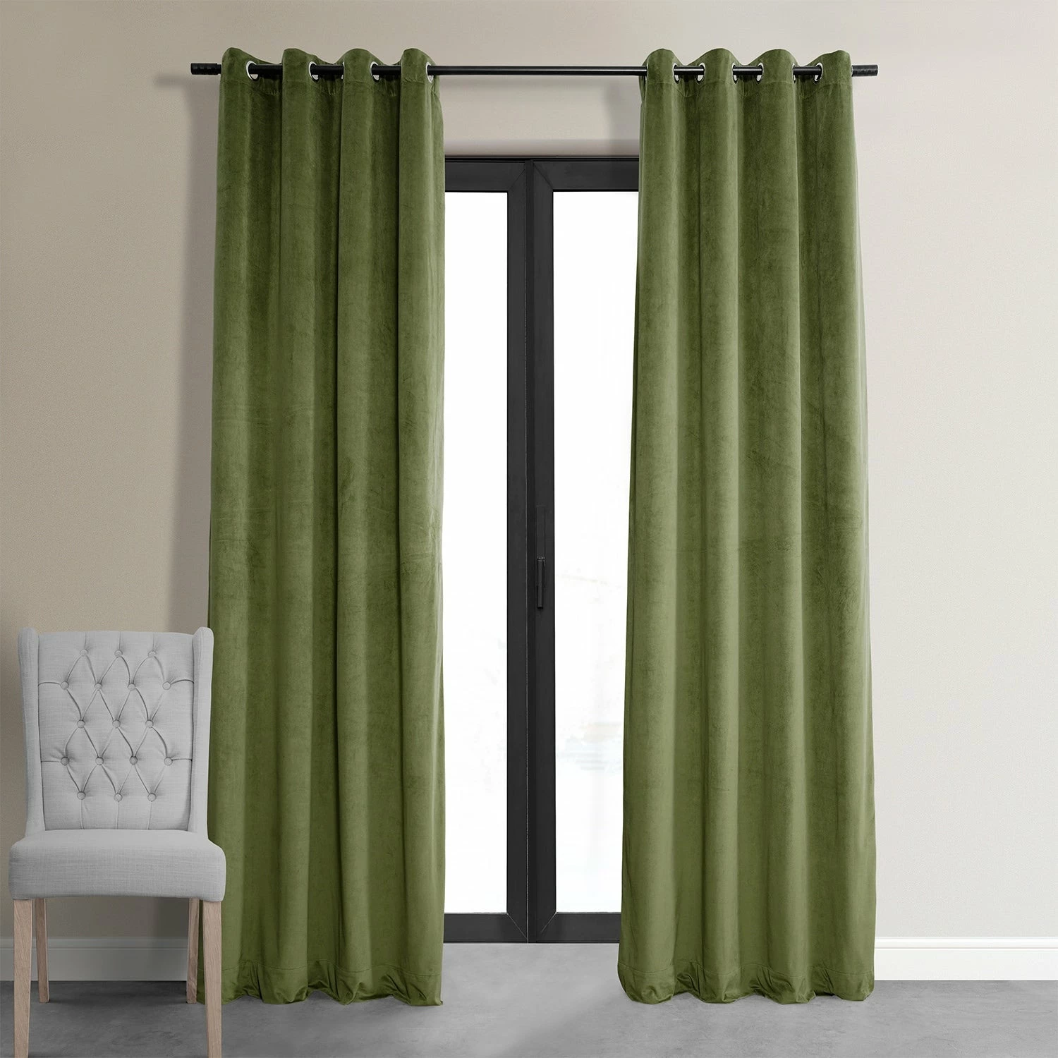 Our soft plush pile Velvet Curtains & Draped have a natural luster with a depth of color that creates a formal, polished look. Made of high-quality, poly velvet and soft flowing polyester blackout thermal lining. The curtains keep the light out and provides for optimal insulation. As a general rule, for proper fullness panels should measure 2-3 times the width of your window/opening.