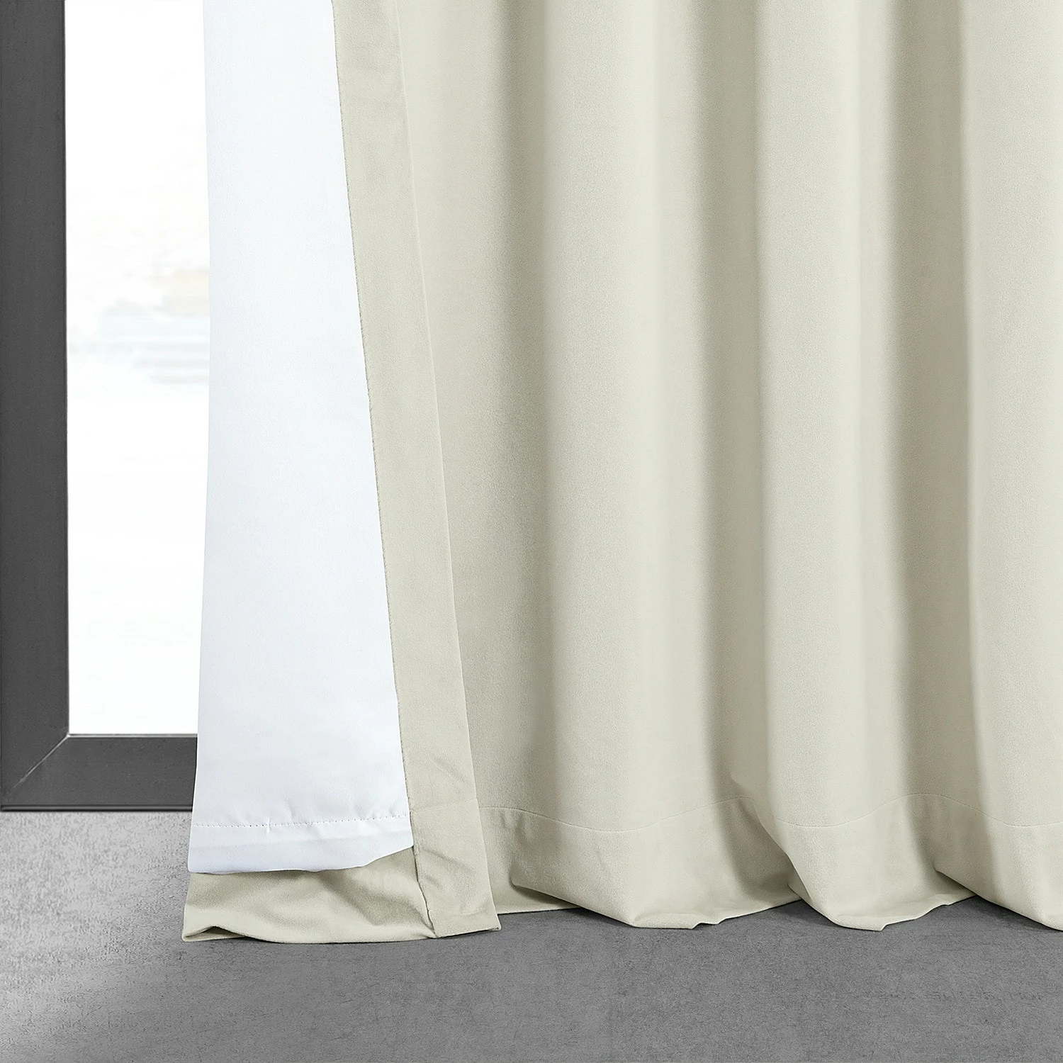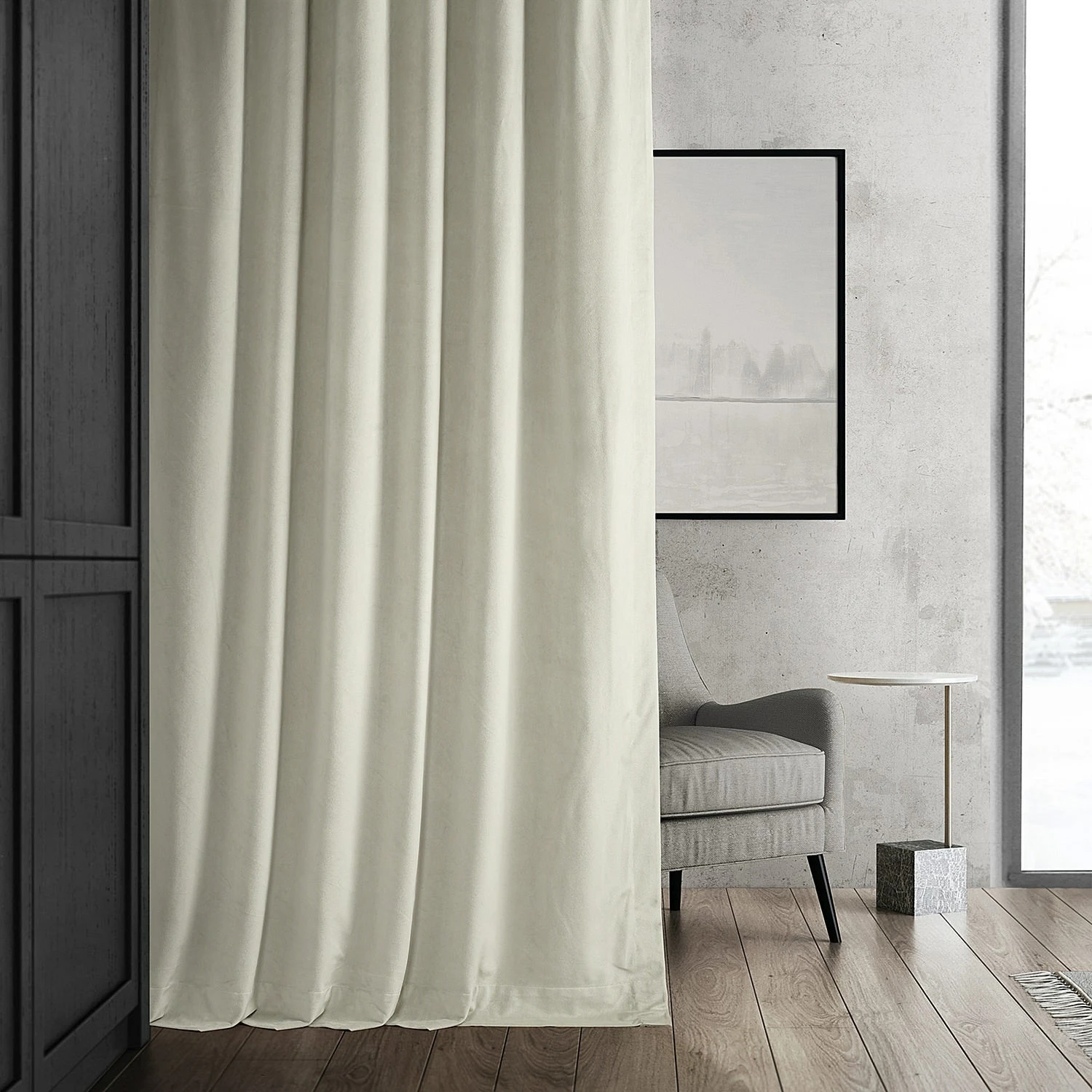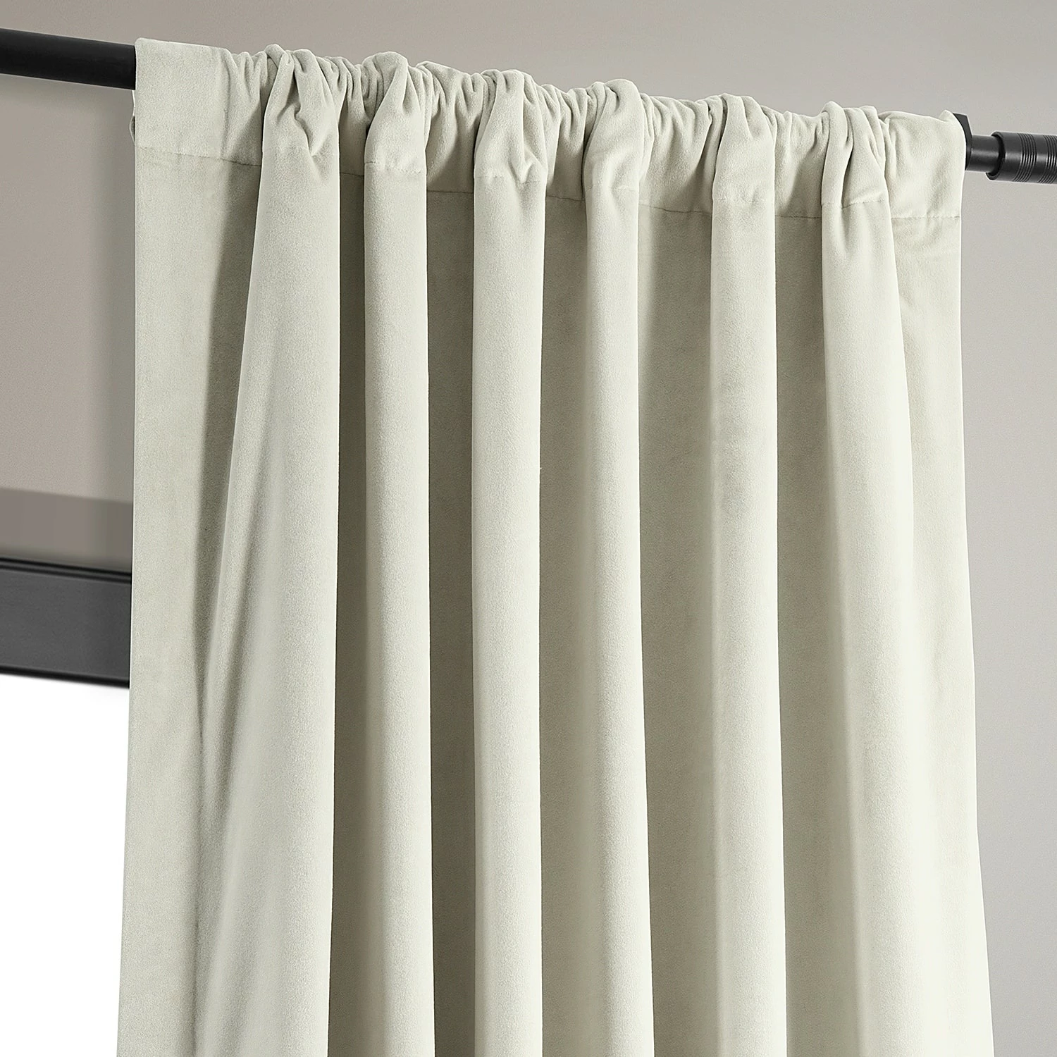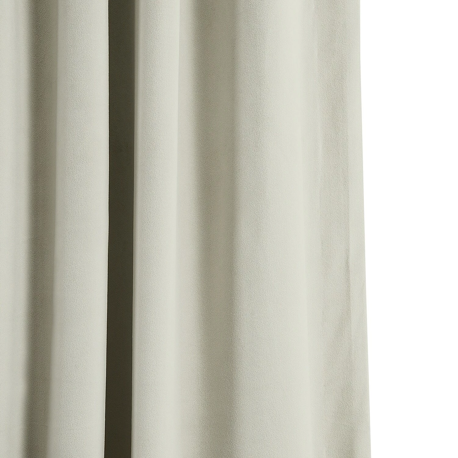 Relax with a midday movie or a lazy Sunday sleep-in with this lovely blackout curtain panel. The elegant off-white color is wonderfully versatile for use in a variety of interiors, and the polyester velvet fabric is resistant to wrinkles for marvelous appeal. Cotton lining lends additional durability and privacy for the optimum blackout use.