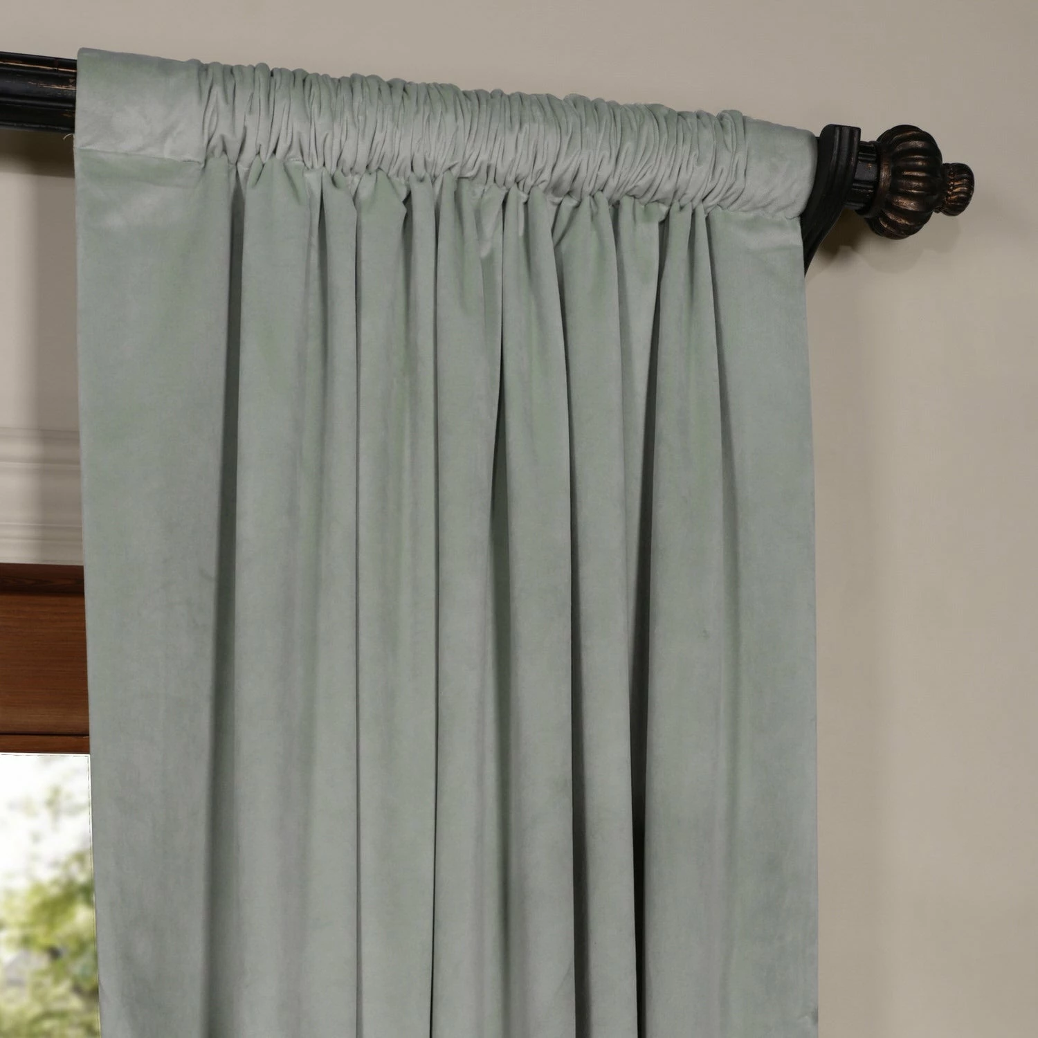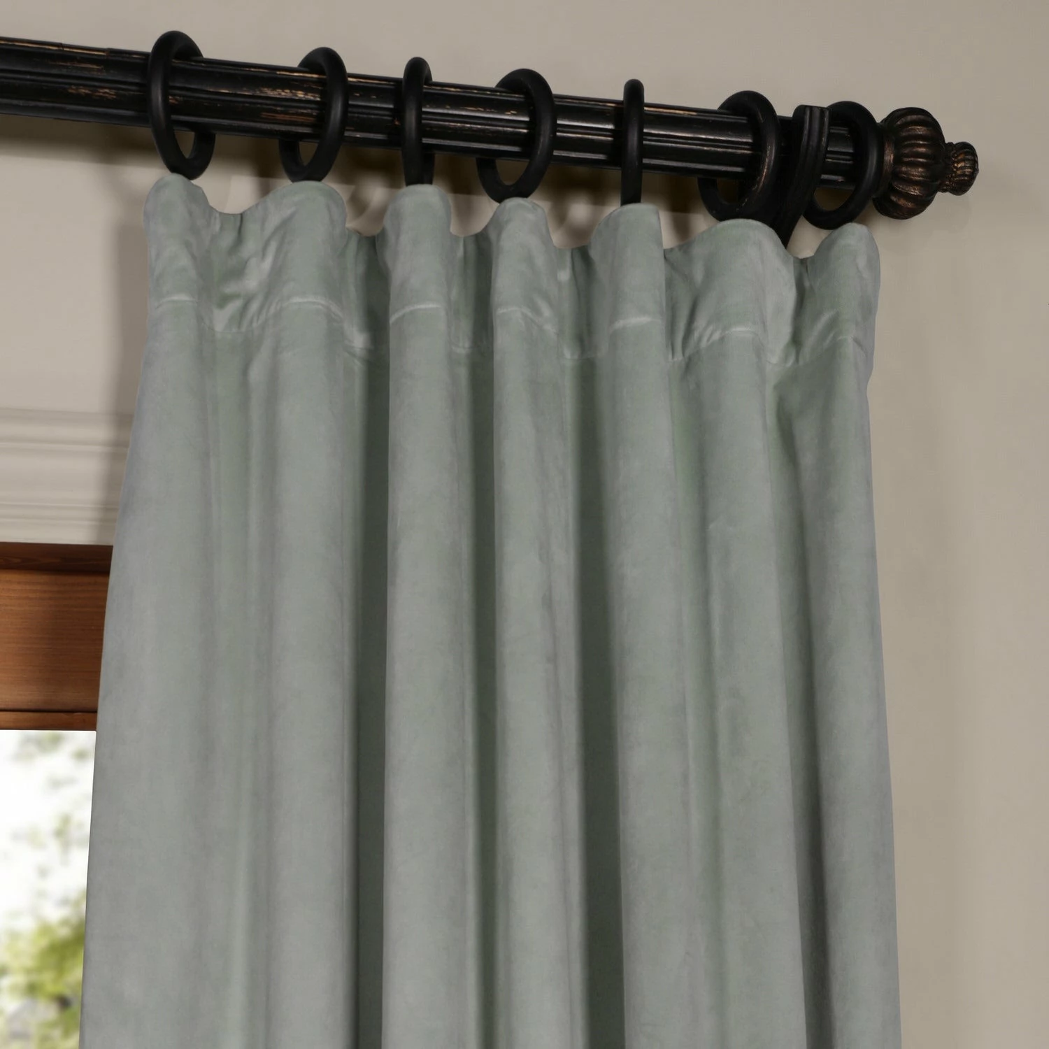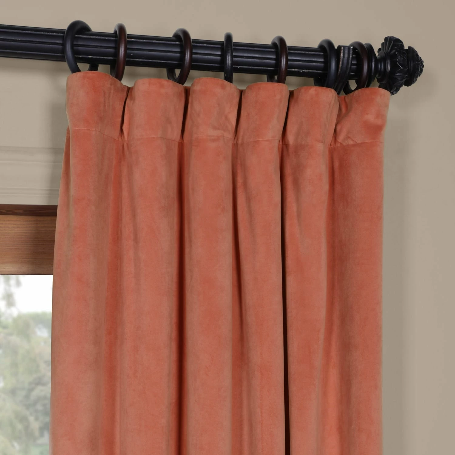 Featuring a plush velvety texture, this blackout curtain panel borders any window with soft, flowing elegance. Crafted with polyester velvet and a blackout thermal lining, the curtain blocks harmful UV rays and helps insulate your home against heat and drafts to reduce utility costs. The thick fabric keeps out light to facilitate peaceful rest, and the curtain is available in a variety of colors to enhance your unique home.