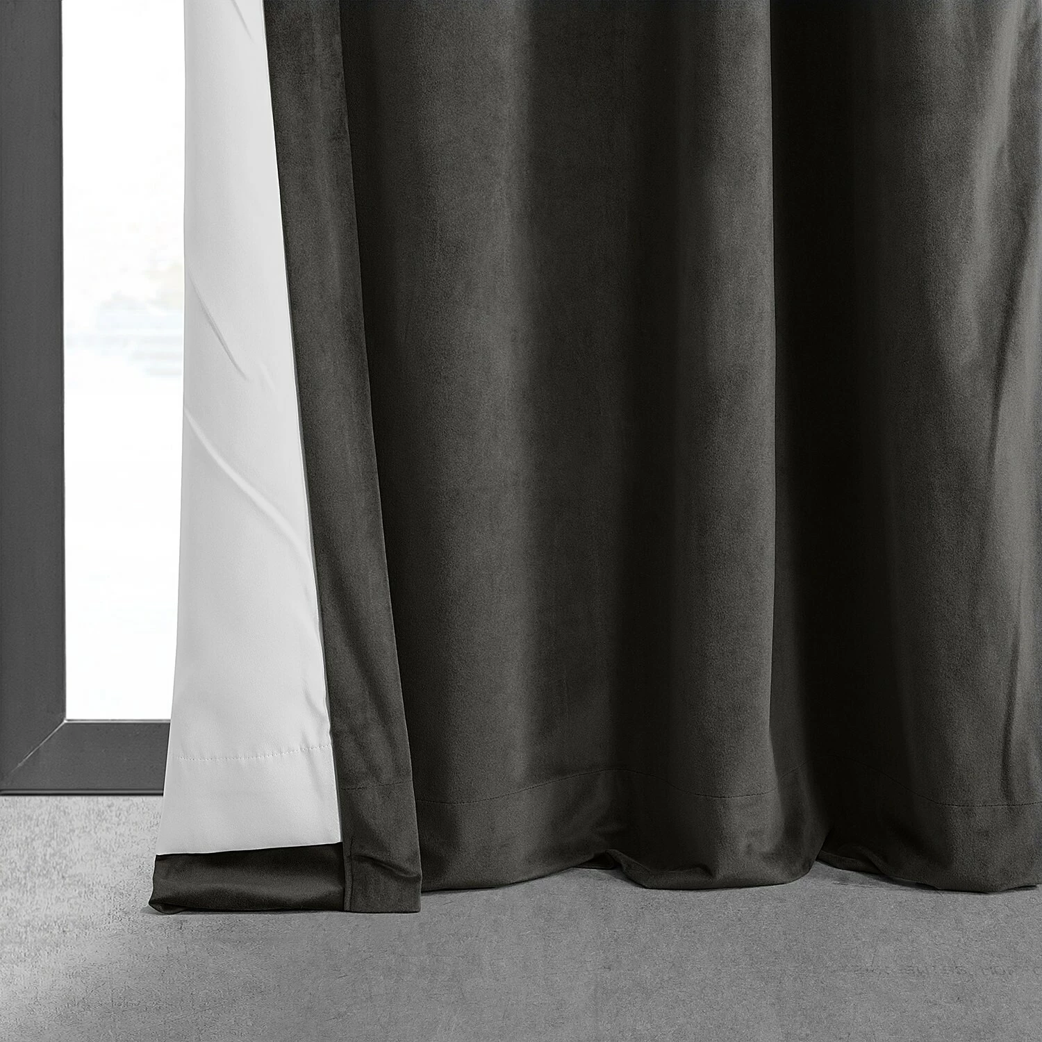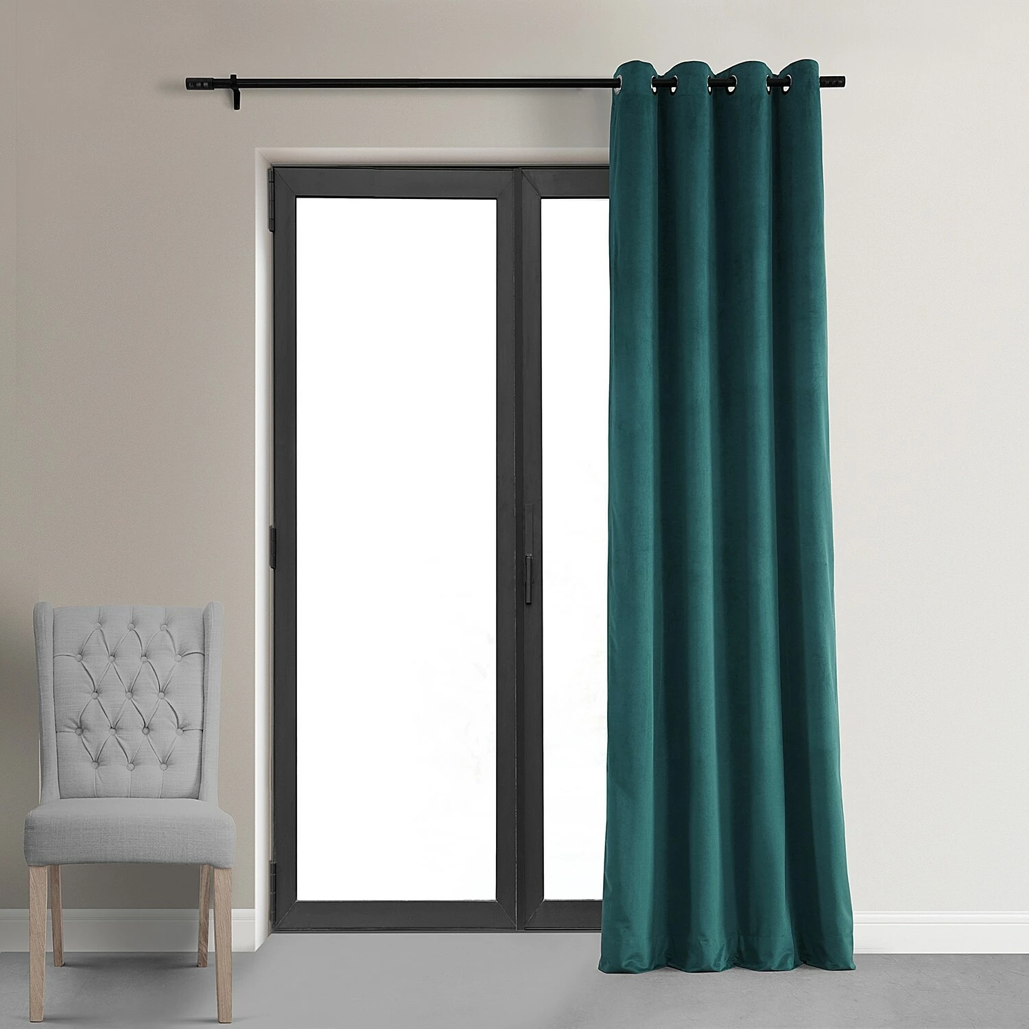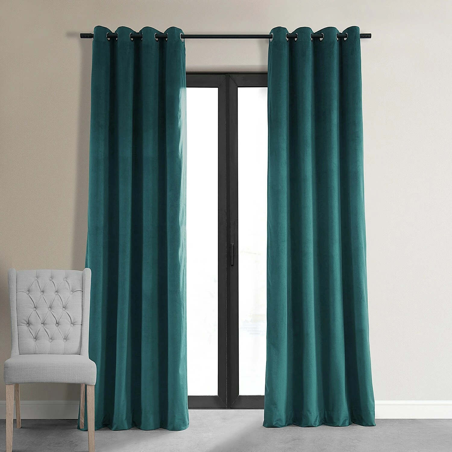 Treat your windows to the plush, formal look of this Signaturevelvet grommet 120-inch blackout curtain panel. Available inseveral beautiful colors, this deeply pigmented panel adds beautyto your living space, while blocking outdoor light and providinginsulation. With its large grommets, this polyester velvet panel iseasy to hang.