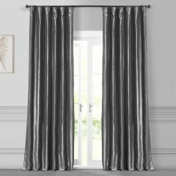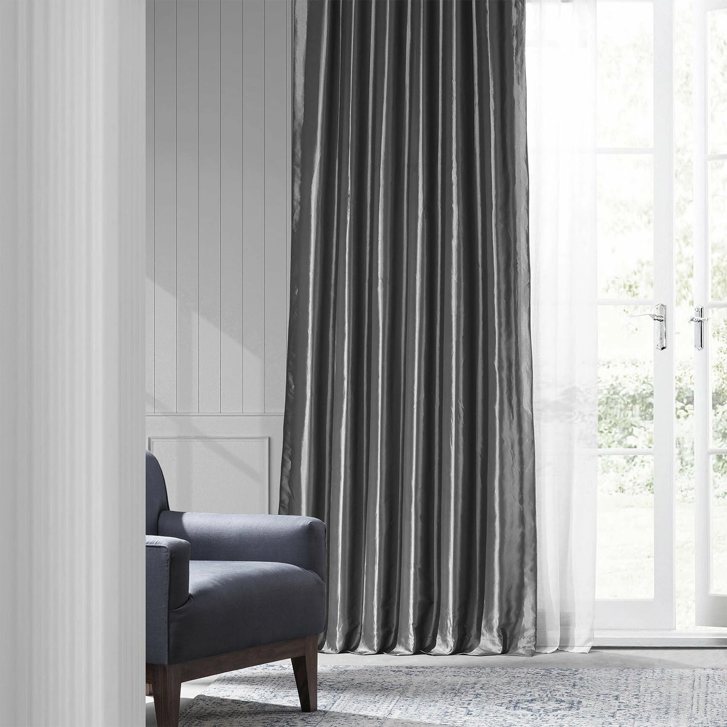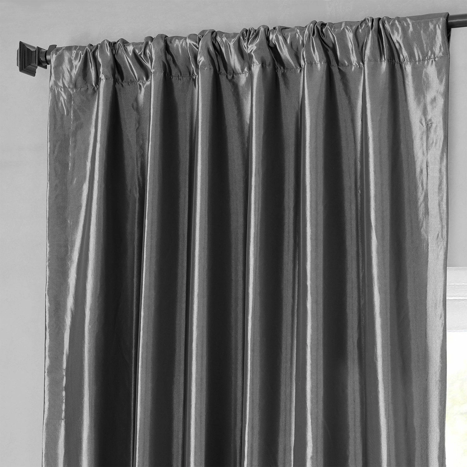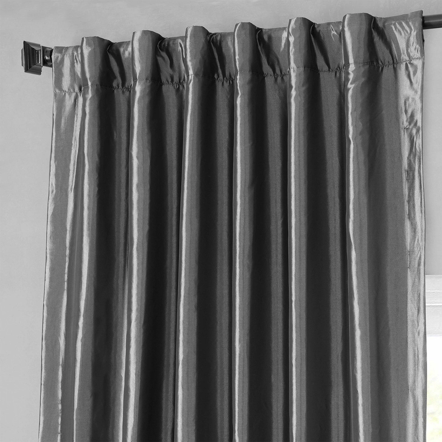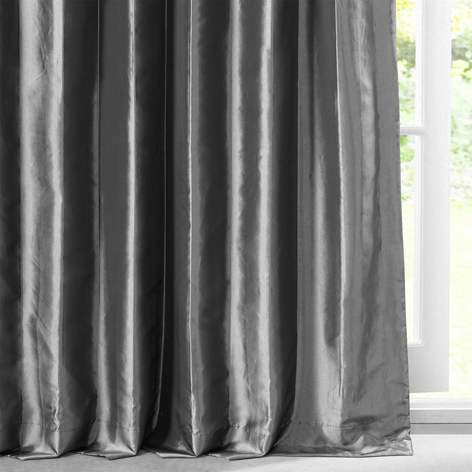 Enter transitional design territory when you hang this graphite grey curtain panel in your living room. Faux-silk taffeta fabric introduces luxurious beauty on this long curtain panel, and the energy-saving design features a flannel interlining and cotton lining to add softness to this beautifully draping curtain.