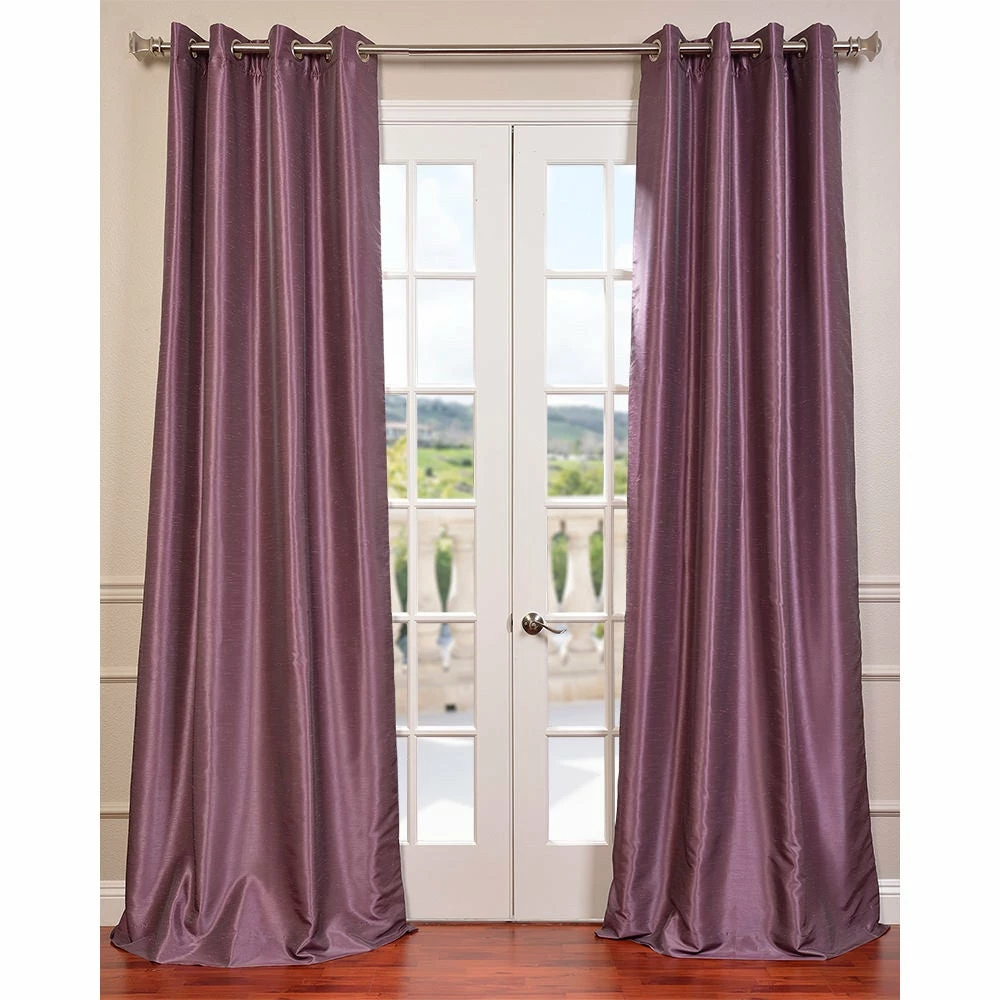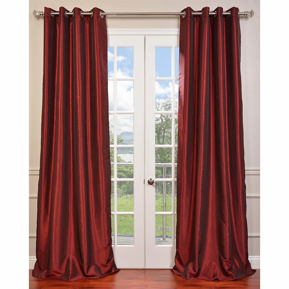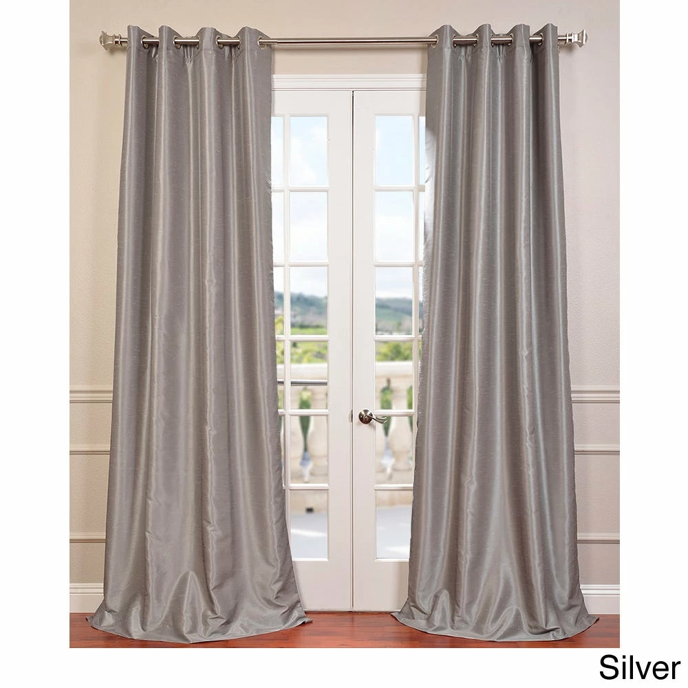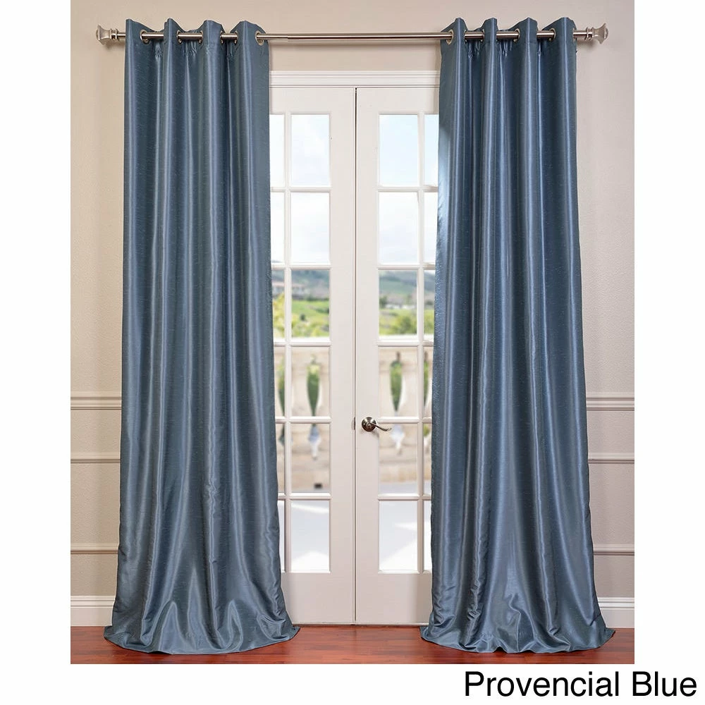 Enjoy the rich texture of this faux-silk curtain panel from EFFCurtains. This Dupioni 108-inch curtain panel features a blackoutcapability to stop unwanted exterior light from filtering in, whileits solid color gives your room a uniform look. Save energy at homewith this 100 percent polyester panel, which is also easy to rehangafter dry-cleaning thanks to its grommet construction.