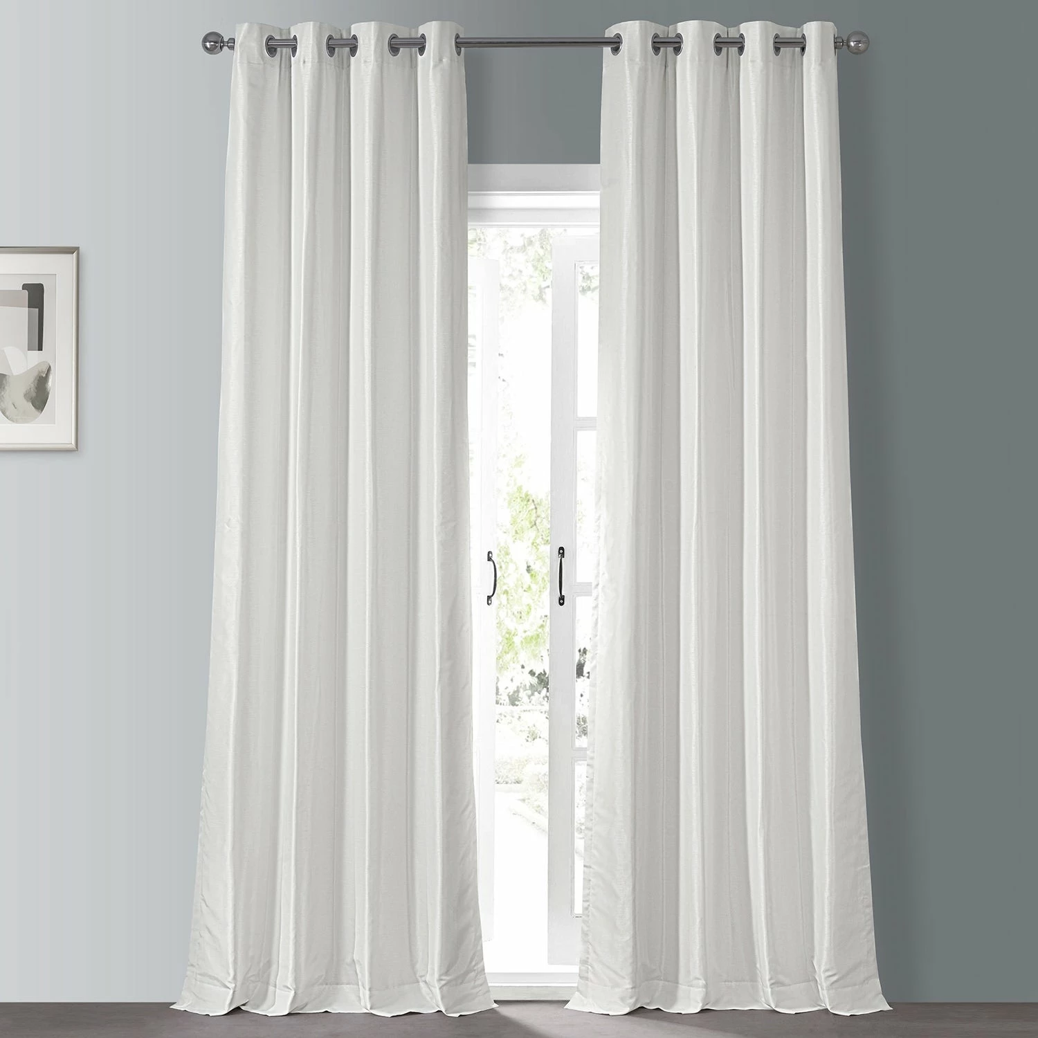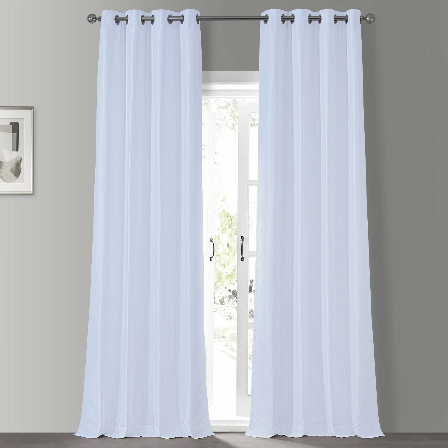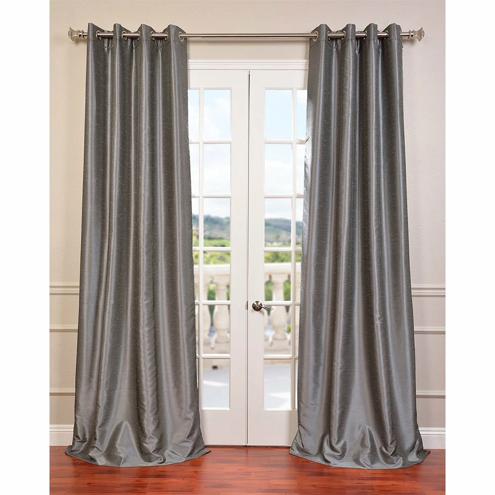 Enjoy the rich texture of this faux-silk curtain panel from EFFCurtains. This Dupioni 108-inch curtain panel features a blackoutcapability to stop unwanted exterior light from filtering in, whileits solid color gives your room a uniform look. Save energy at homewith this 100 percent polyester panel, which is also easy to rehangafter dry-cleaning thanks to its grommet construction.
