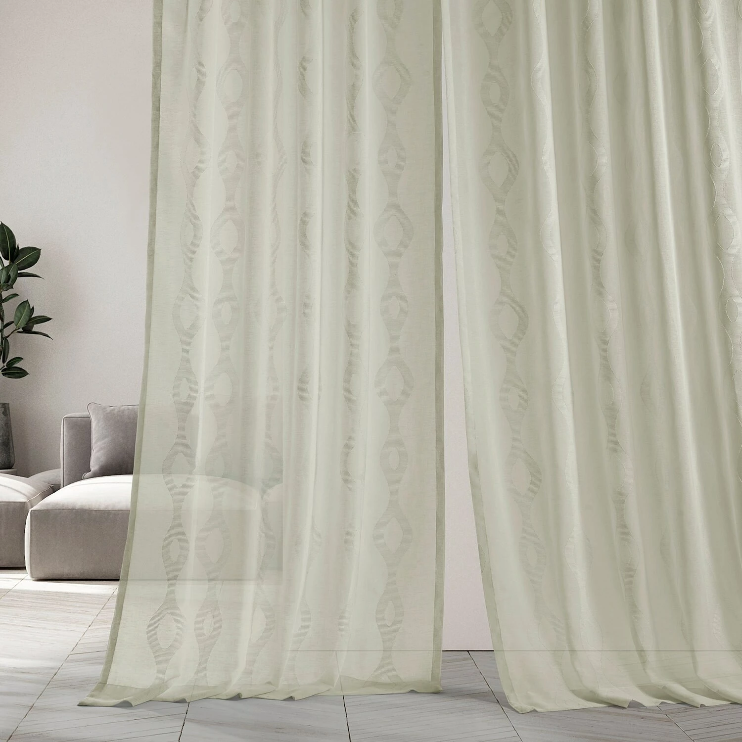Soft, supple and translucent, these beautiful Patterned Linen Sheers will add interest and elegance to any window. Offered in medley of designs from modern geometrics to romantic florals, these sheer curtains can be an added decorative touch when paired with solid curtains, or can be a charming, elegant design element when hung all on their own.
