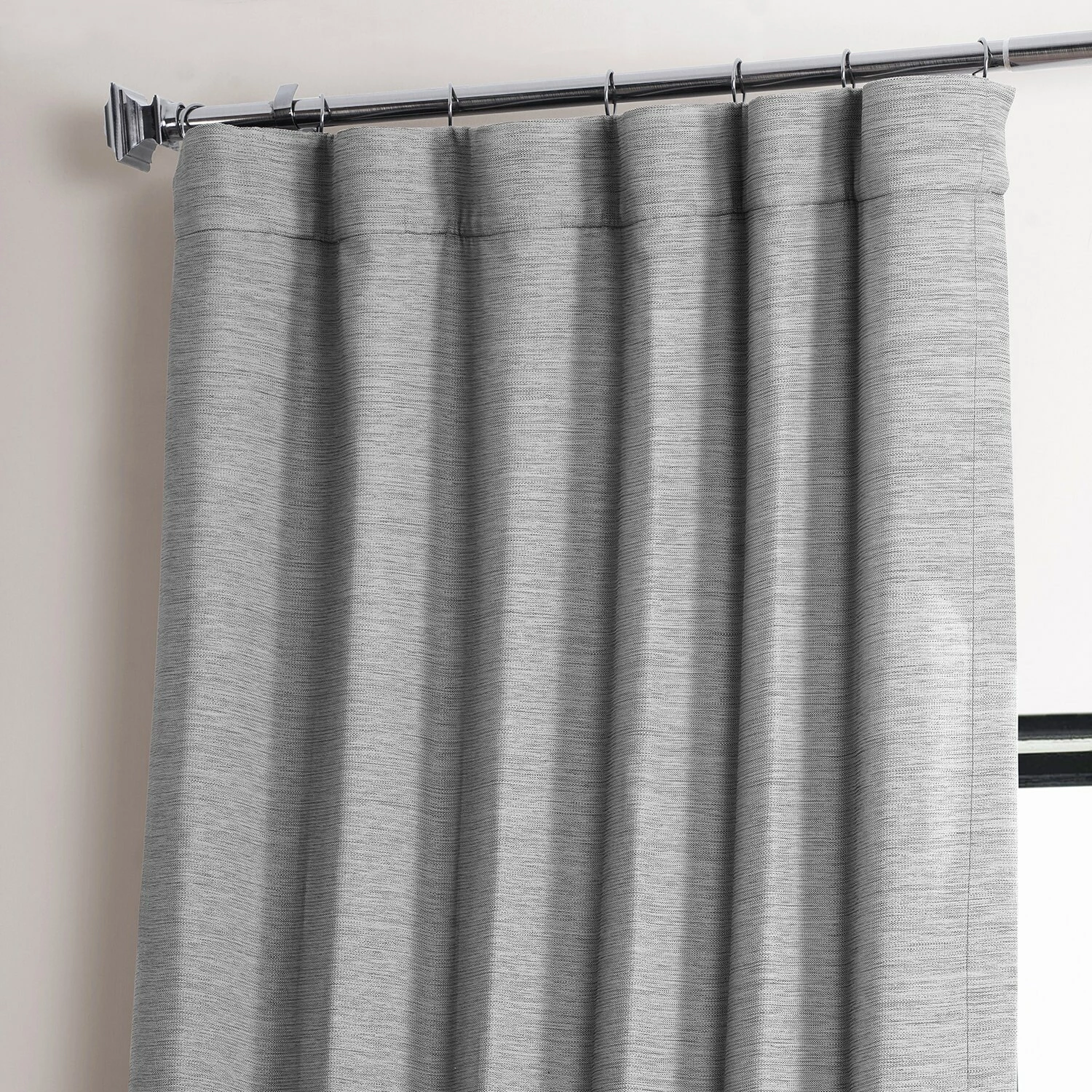 Block light and conserve energy with this beautifully designed polyester blackout curtain panel. The silky fabric pools on the floor from rod pocket headers, and the rich texture adds sophisticated visual appeal to your window.