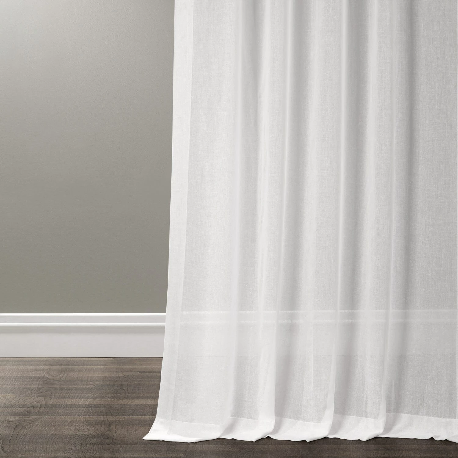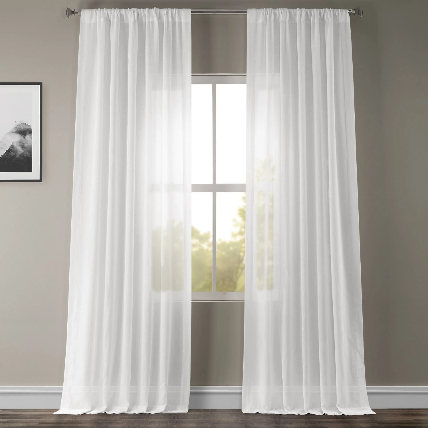 Create an open airy ambiance in your room when hanging this sheer White Orchid curtain panel from Exclusive Fabrics. The faux-linen fabric creates a lightly textured appearance while still allowing for diffused light to filter through the off-white curtain for soft natural illumination.