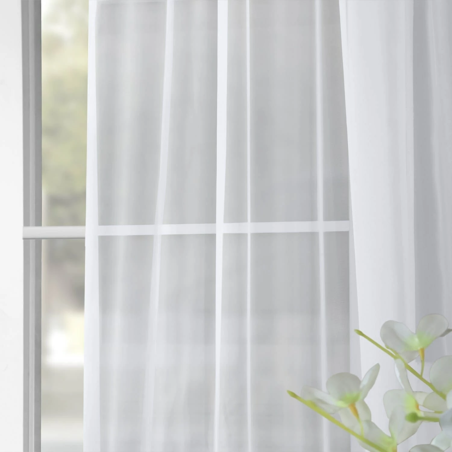 Lend privacy and warmth to your room with this pair of sheer curtain panels. These light and airy polyester curtains filter light into your room and come in a solid white tone that easily meshes with existing furnishings. Improve your room’s overall aesthetic by pairing these panels with a fancy curtain rod.
