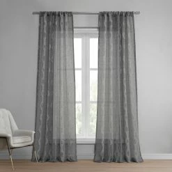 Cheapest ✨ Exclusive Fabrics Garden Path Solid Cotton Bordered Curtain (1 Panel) Garden Path Black 😀