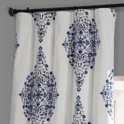 Promo 😀 Exclusive Fabrics Magdelena Silver Faux Silk Jacquard Curtain Panel Magdelena Silver/blue ❤️